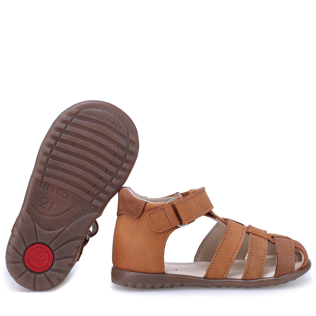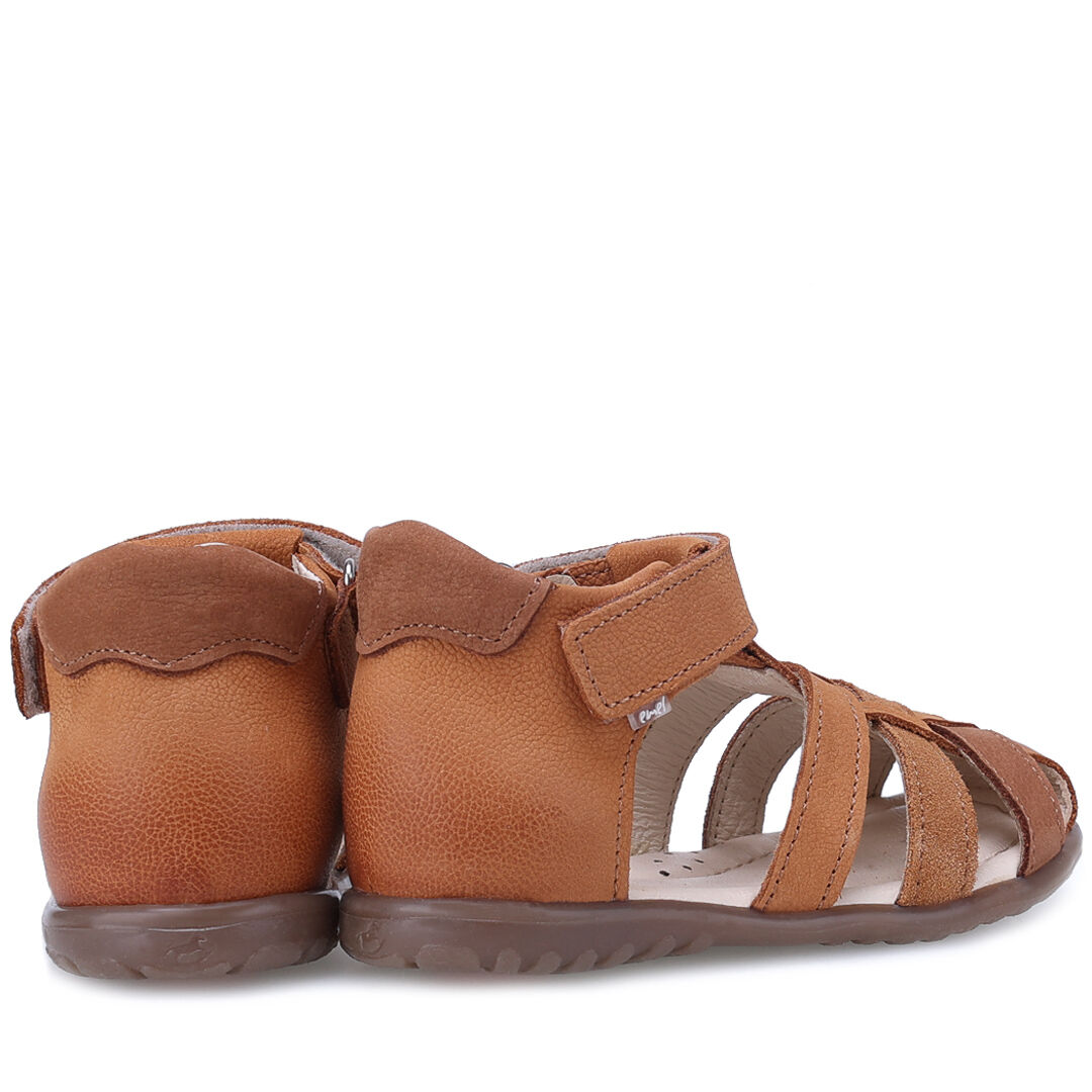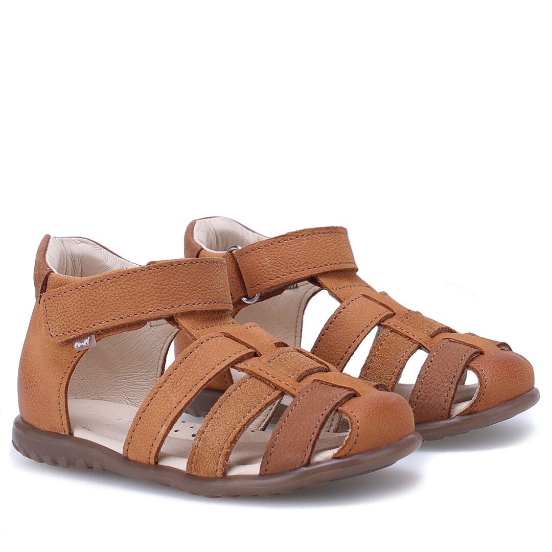 Skórzane sandałki brązowe Emel Panama z zabudowanym przodem i stabilnym zapiętkiem