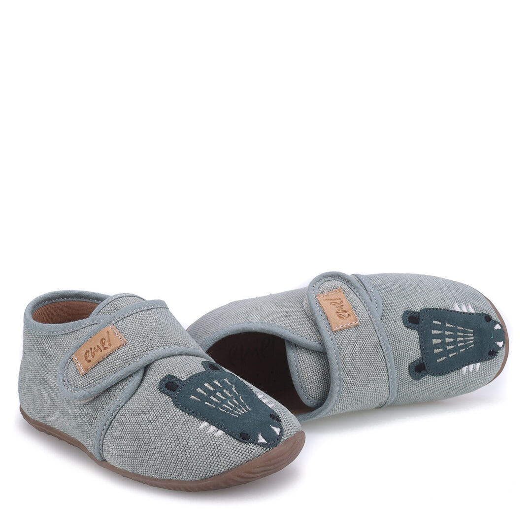Tekstylne kapcie dziecięce Emel zielone z krokodylem