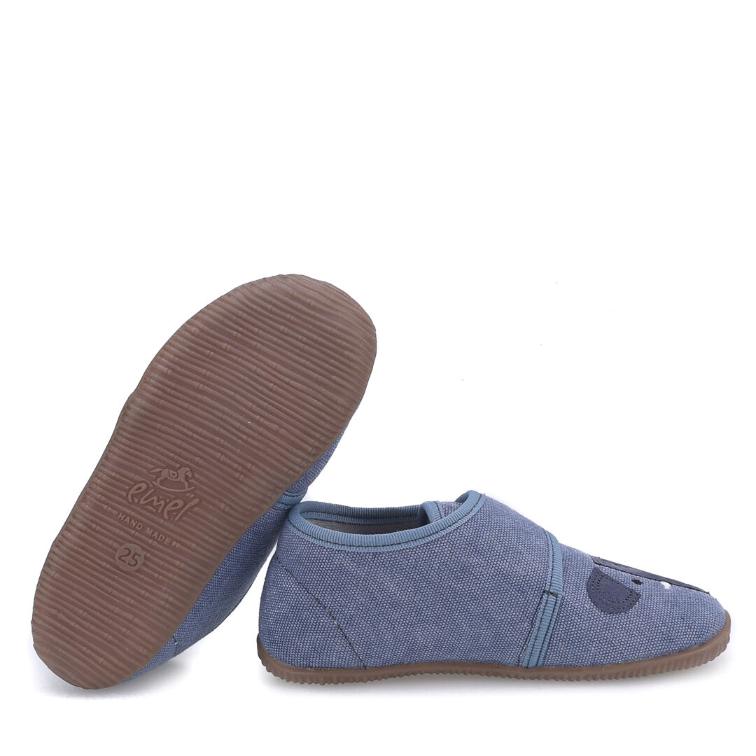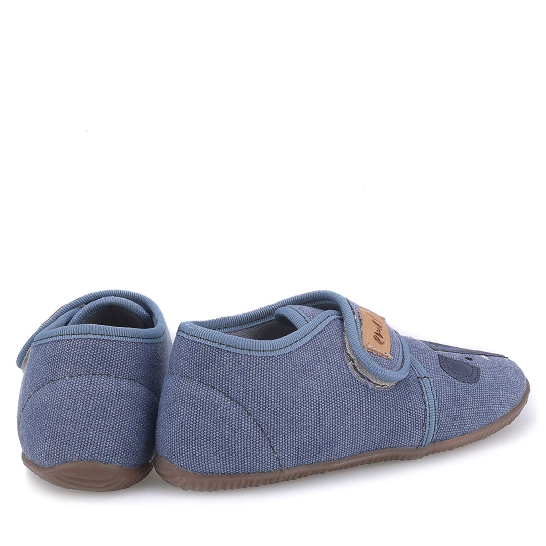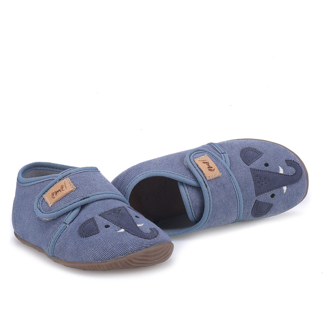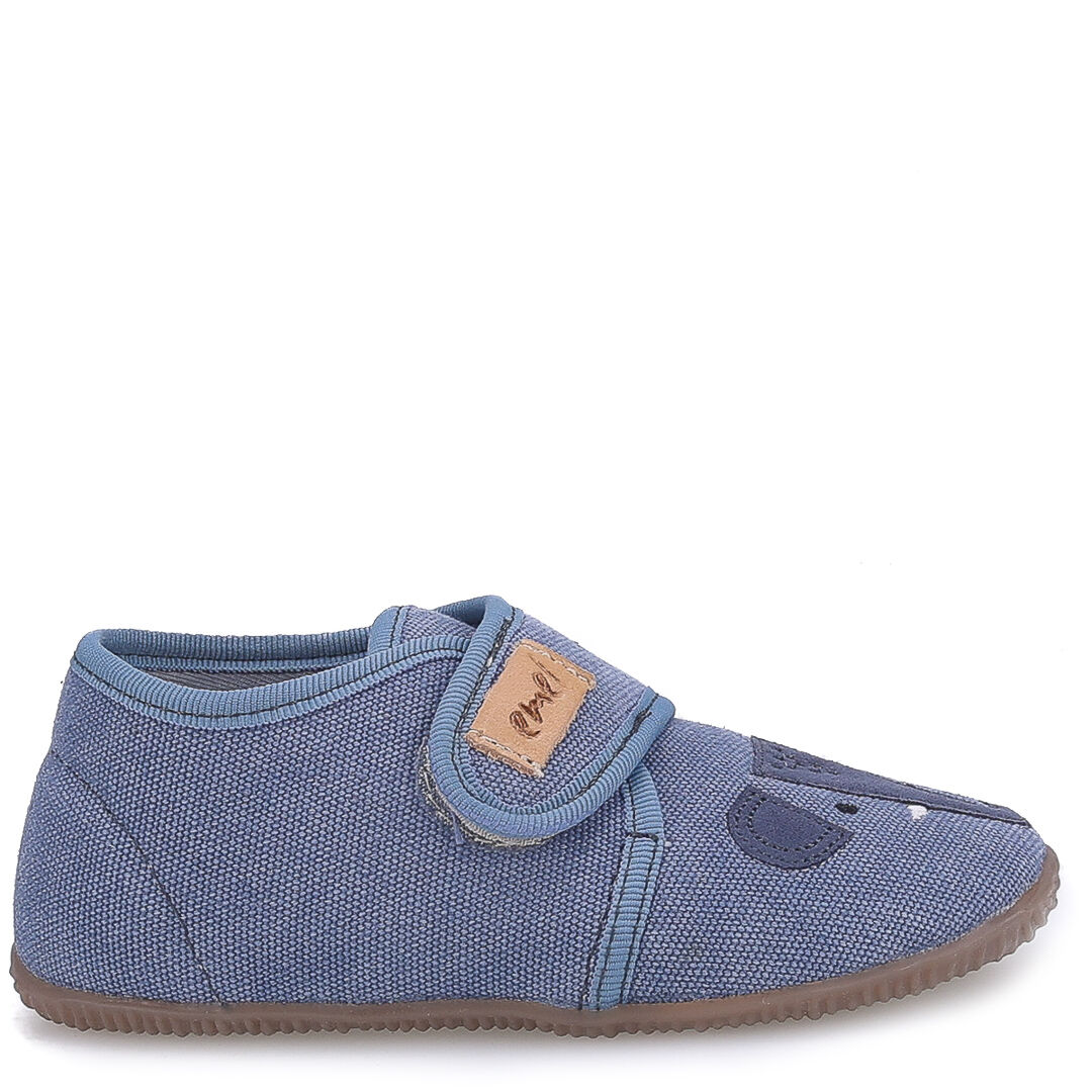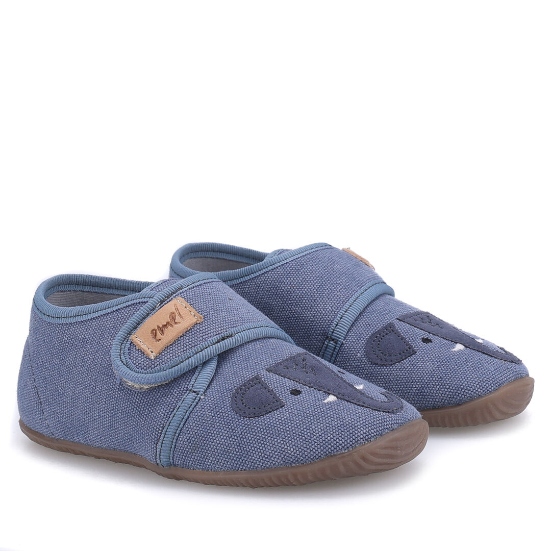 Tekstylne kapcie dziecięce Emel niebieskie ze słonikiem