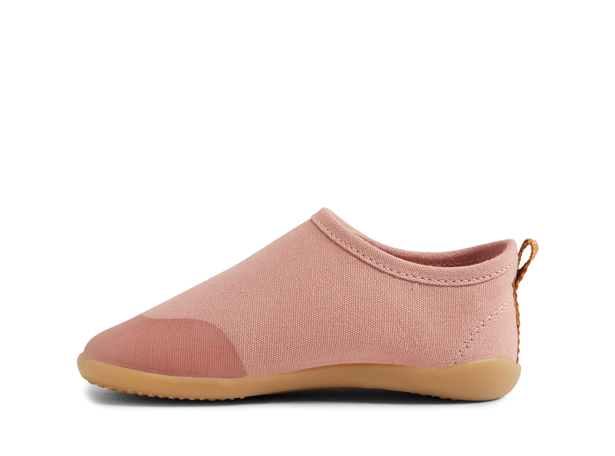 Cienka podeszwa zapewnia dziecku czucie podłoża chroniąc jednocześnie stopy przed wilgotną i zabrudzoną posadzką oraz chłodem. Cholewkę wykonana została zwysokiej jakości bawełnianej tkaniny organicznej - stopa mniej się poci.