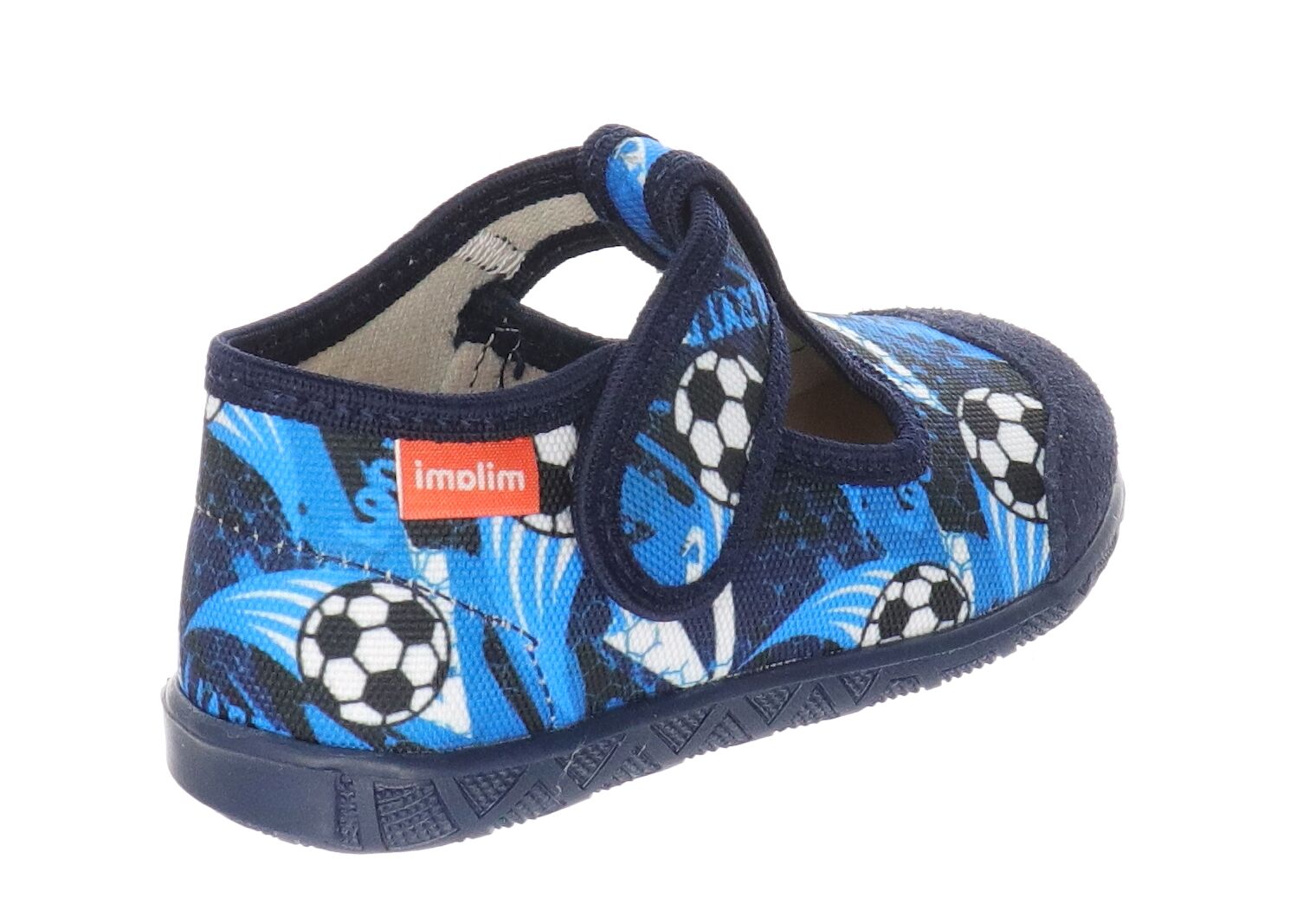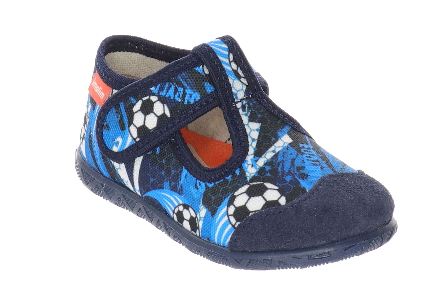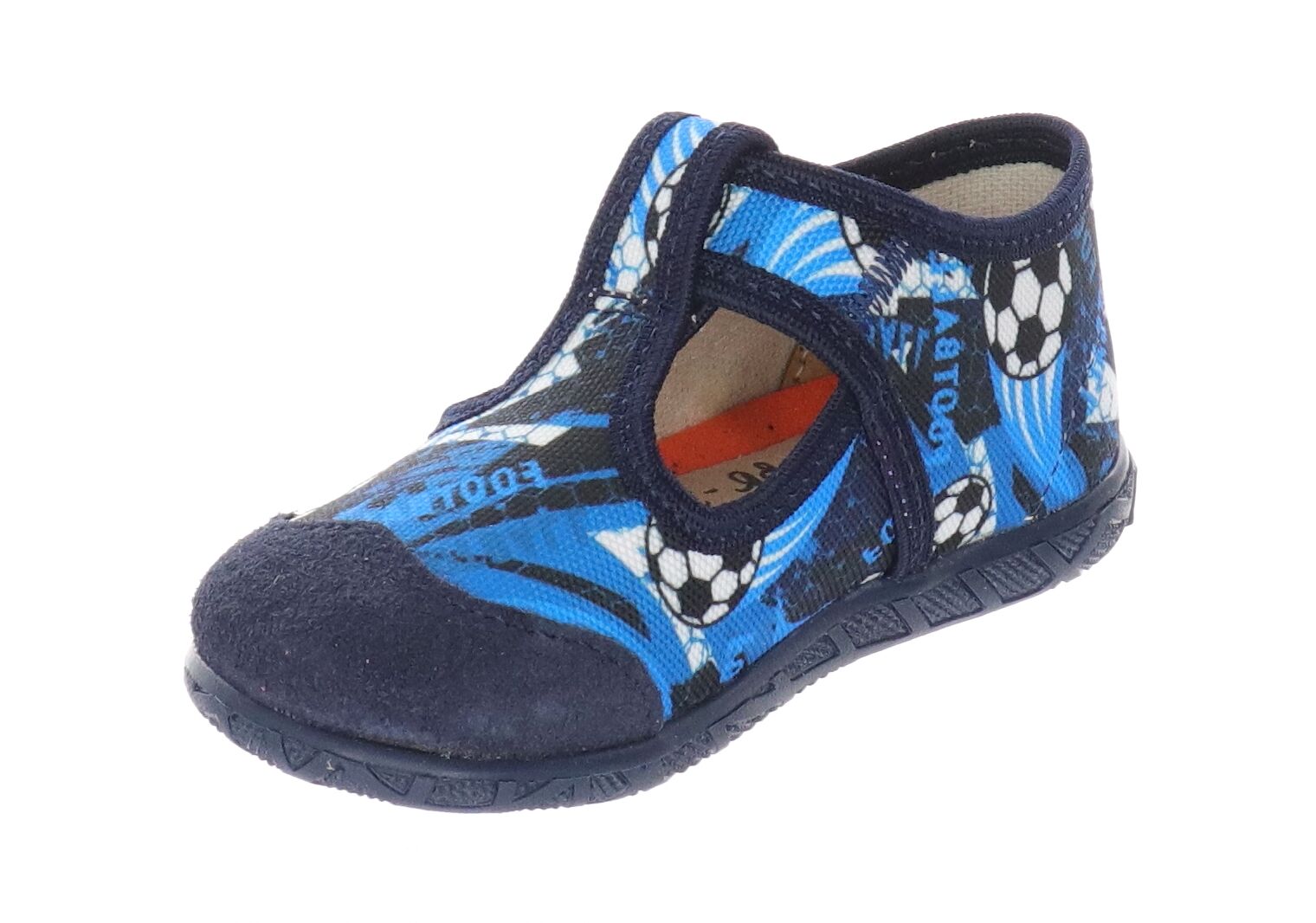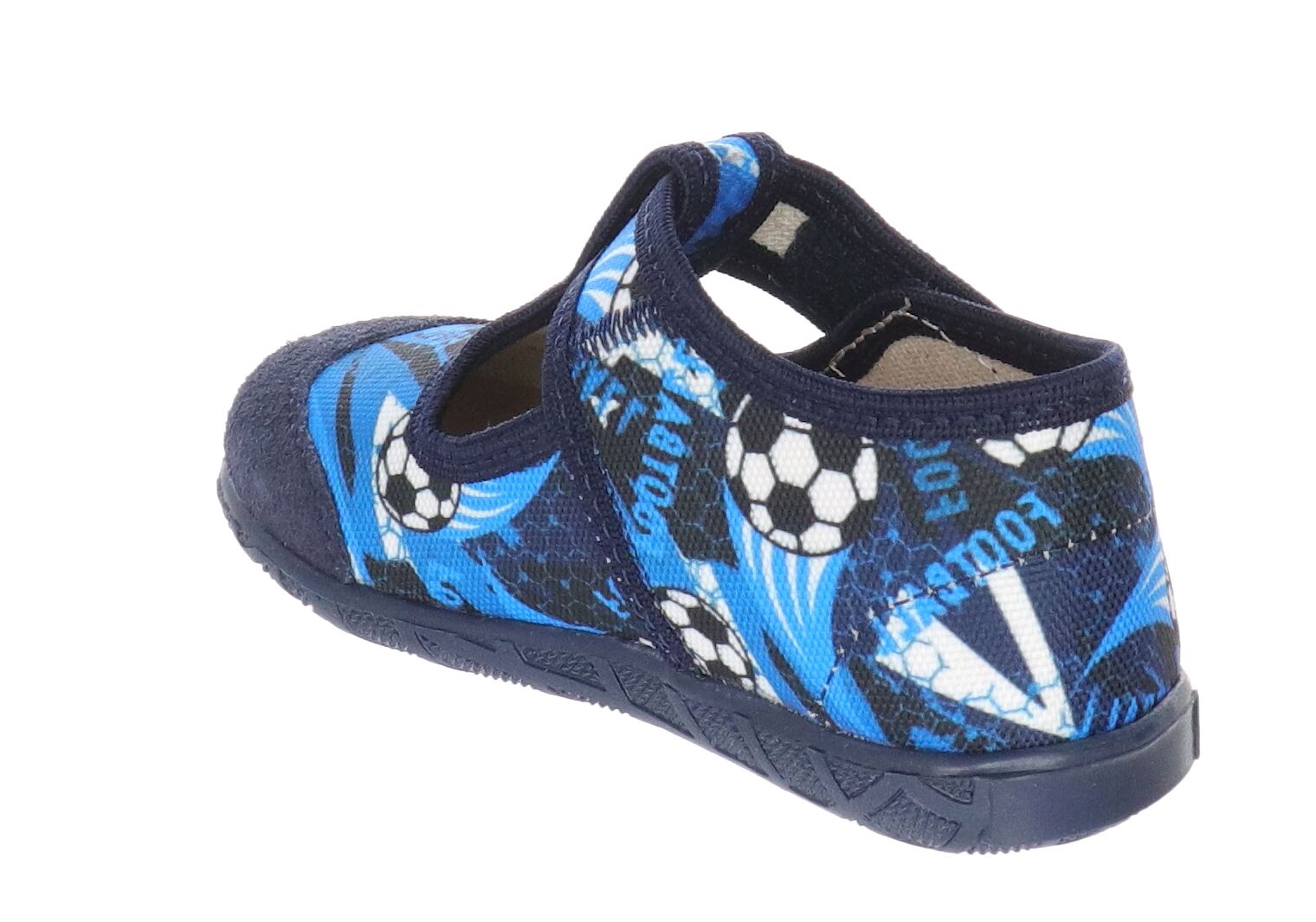Kapcie dziecięce granatowe w piłki ze skórzaną wkładką Milami