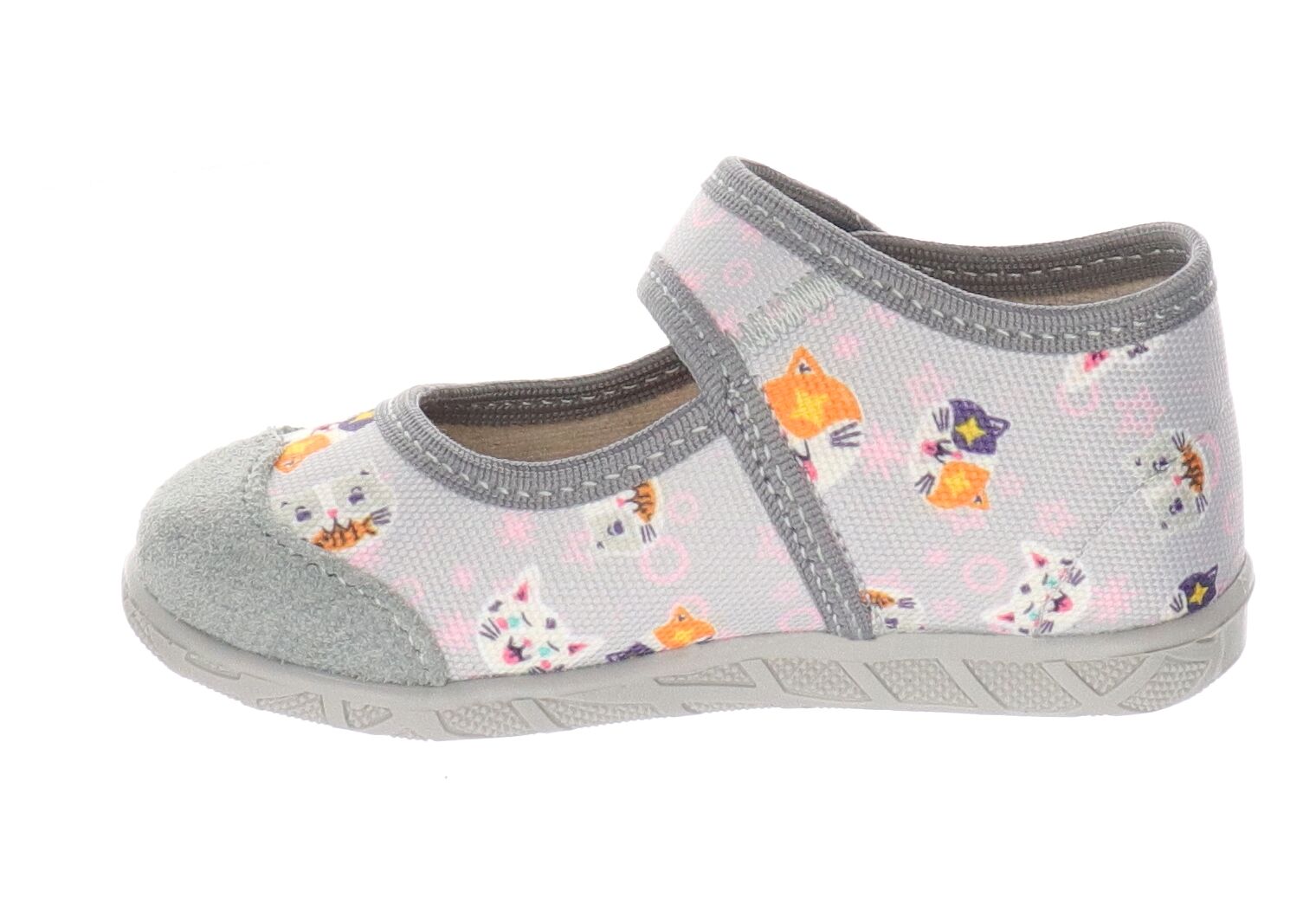 Co wyróżnia szare kapcie dziewczęce w kotki marki Milami? To między innymi: