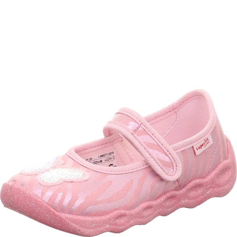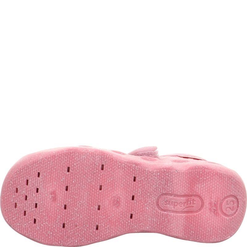 Wegańskie kapcie dla dziewczynki Bubble wykonane zostały przy użyciu materiałów pochodzących z recyklingu , posiadają ozdobę w postaci cekinowego motyla