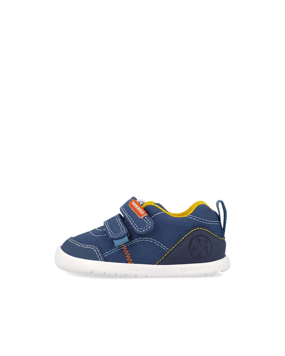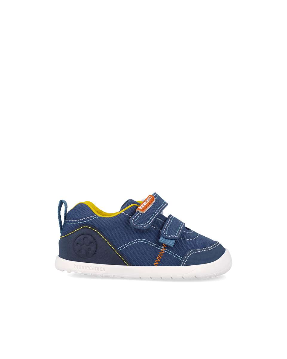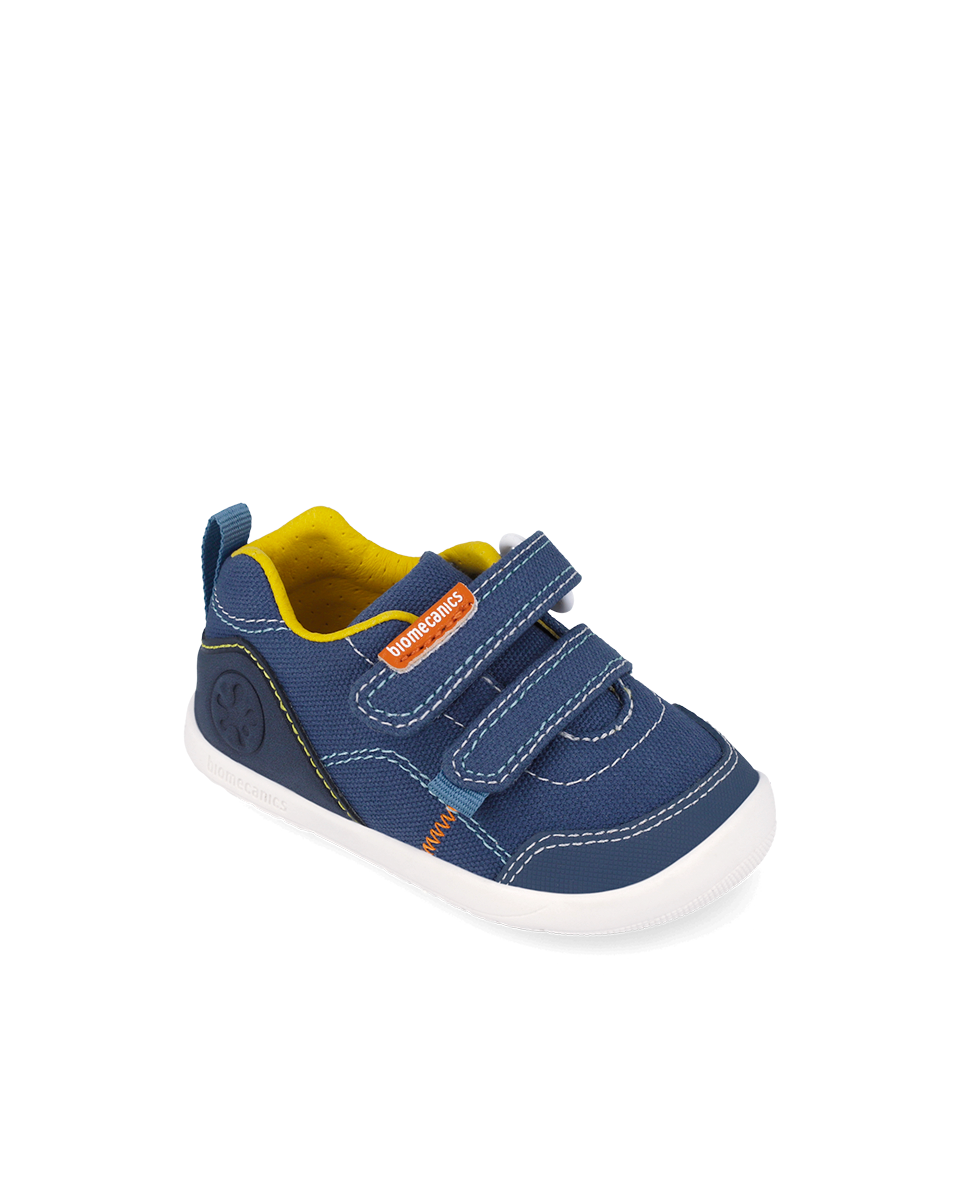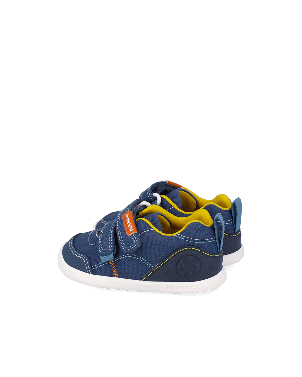 Półbuty dziecięce barefoot Biomecanics z canvasu w kolorze granatowym to lekkie i wygodne buty dla dzieci, które wspierają naturalny rozwój stóp. Model barefoot pozwala stopie pracować swobodnie, bez usztywnień i zbędnego nacisku.