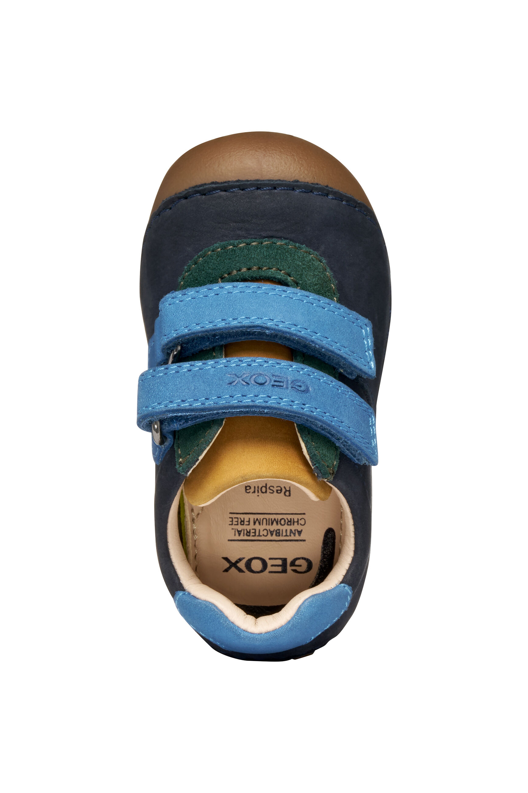 wyjmowana wkładka jest wyściełana nietoksyczną, pozbawioną chromu skórą, aby zapewnić małym stopom suchość przez cały dzień