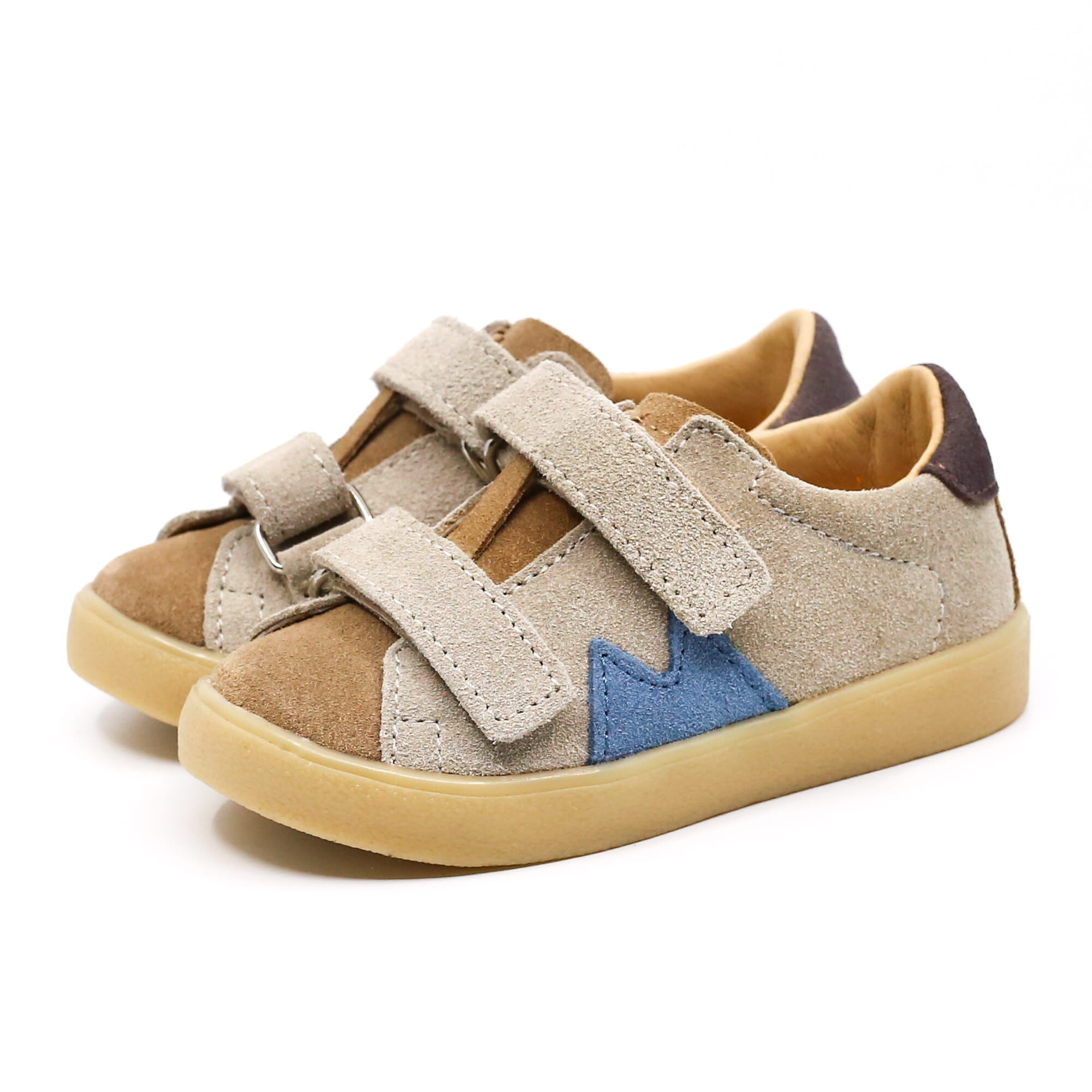 Półbuty dziecięce ze skóry naturalnej welurowej w kolorze kolorze kremowym z beżowymi dodatkam