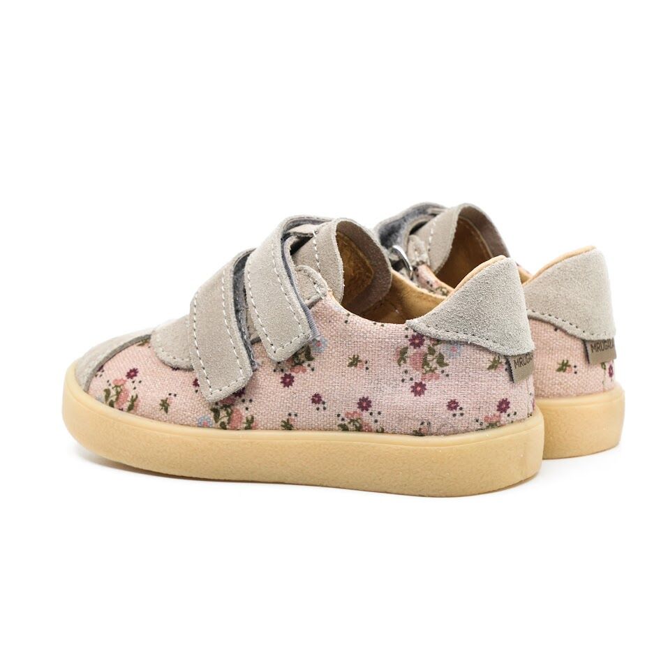 Półbuty dziecięce ze skóry naturalnej welurowej w kolorze rosa oraz materiału tekstylnego