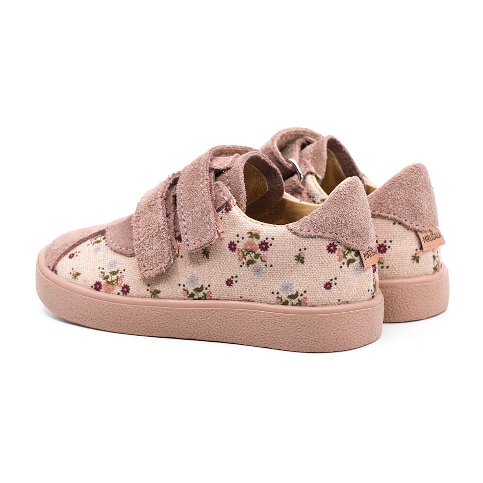 Półbuty dziecięce ze skóry naturalnej welurowej w kolorze rosa oraz materiału tekstylnego