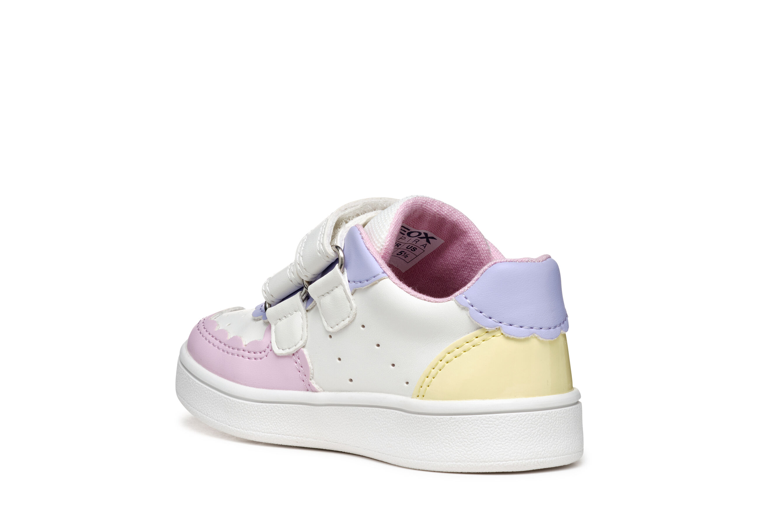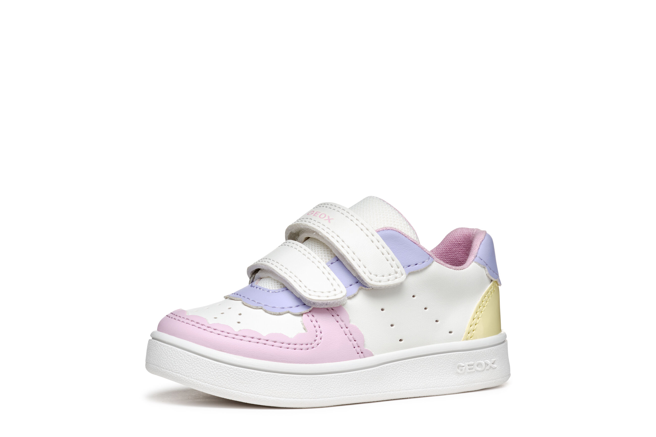 Model Eclyper ma cholewkę w kolorze białym oraz wykończenia w pastelowym różu i fiolecie