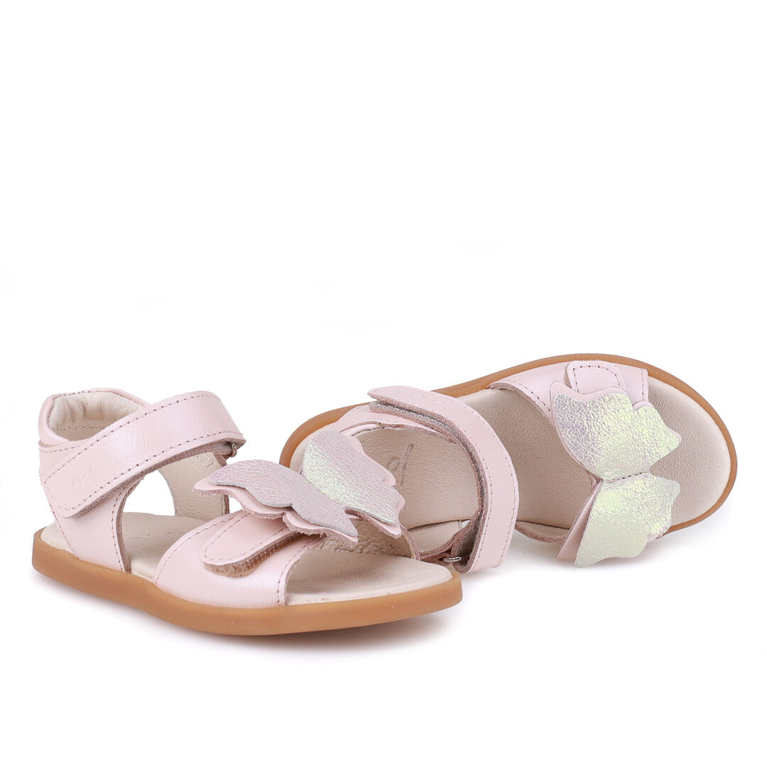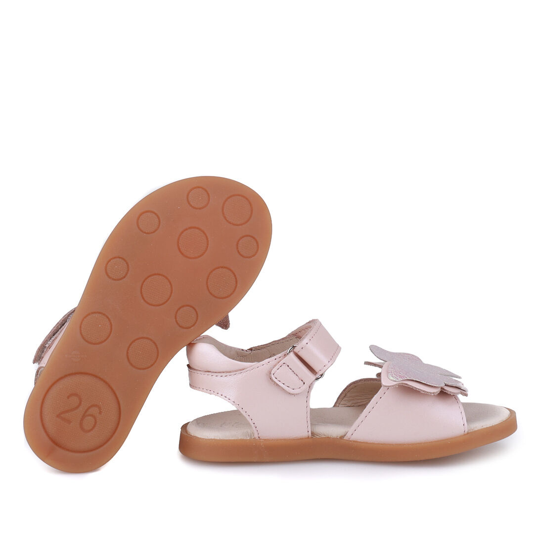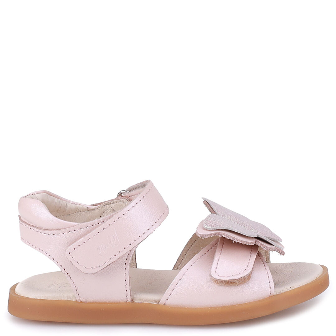 Sandały Emel Nicea to wyjątkowo dziewczęcy model ozdobiony dużym kolorowym motylem