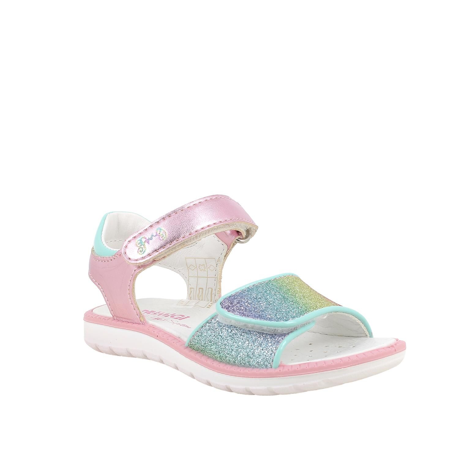 Mają szeroki pasek z brokatem w kolorach tęczy i jest on regulowany rzepem.