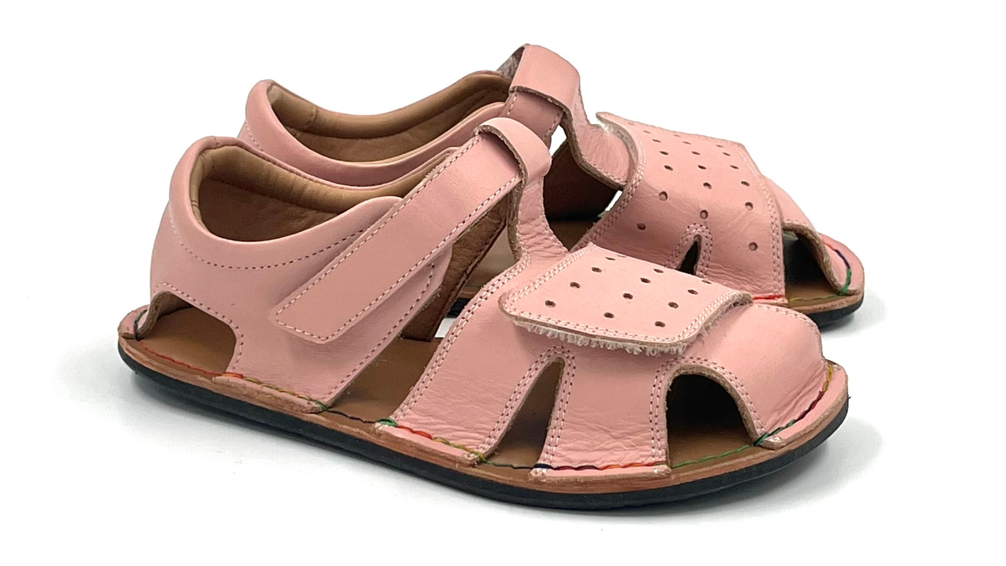 Ręcznie robione skórzane sandały dla dzieci, które kochają swobodę biegania latem.