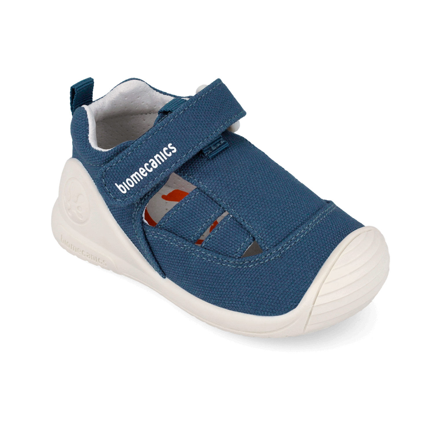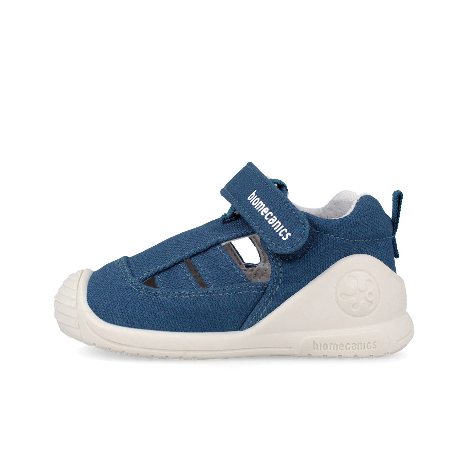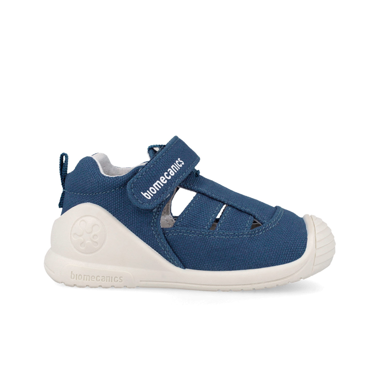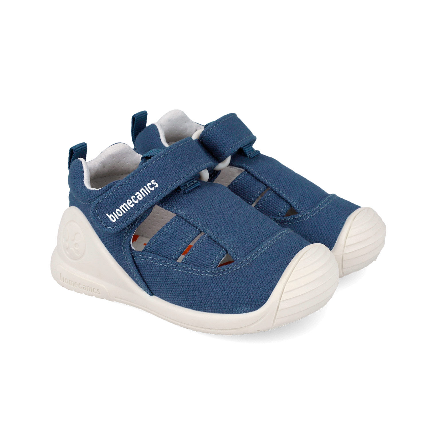 Tekstylne canvasowe sandały dziecięce Biomecanics Lona, których forma i kształt opracowane zostały z Instytutem Biomechaniki w Walencji
