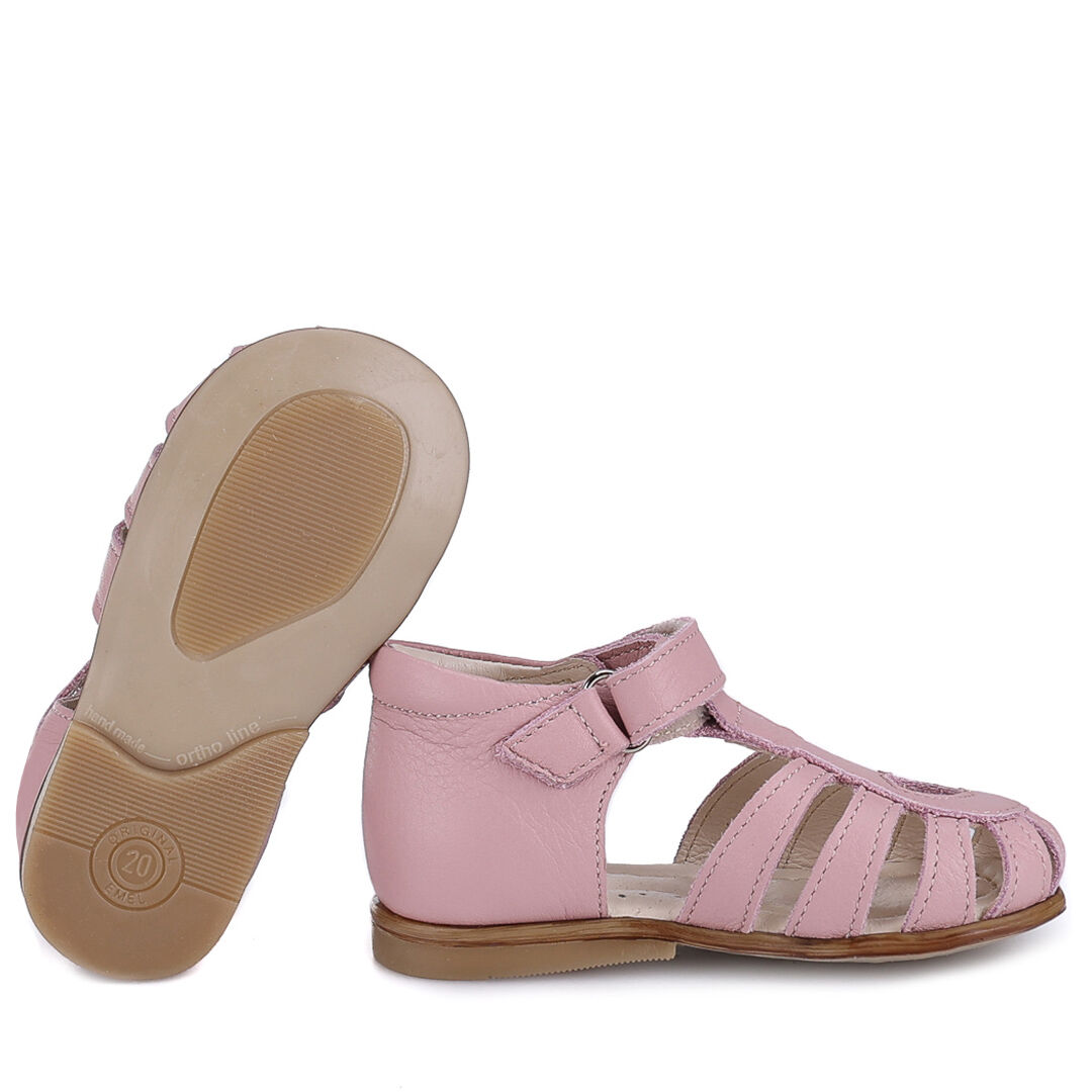 Sandały dziecięce Emel E1151c-2 w kolorze jasno różowym ze stabilnym zapiętkiem i zabudowanym przodem