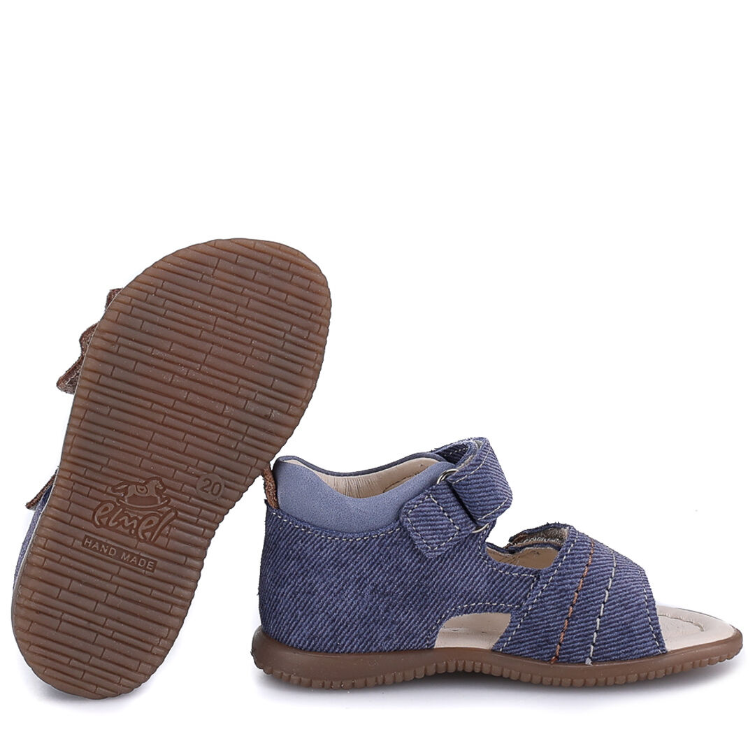 Sandałki granatowe Emel Korfu to lekkie i przewiewne sandały z serii roczki z usztywnionym zapiętkiem i stabilnymi bokami