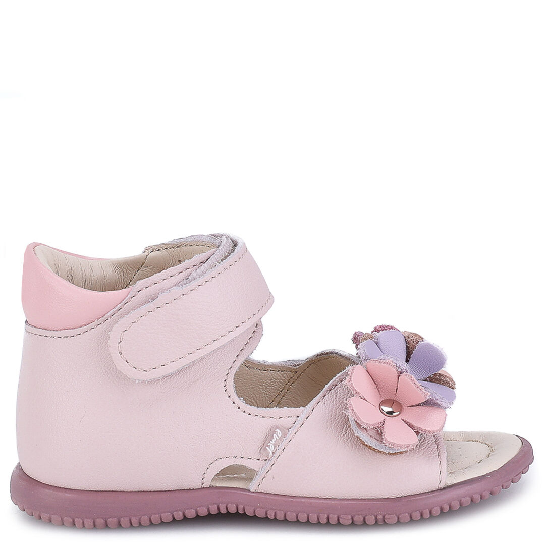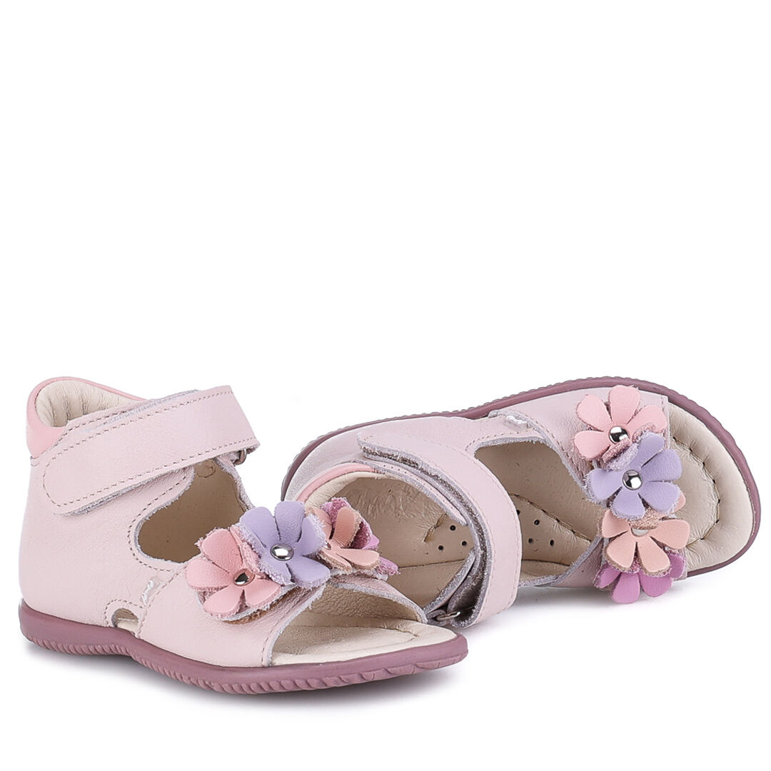 Sandały dziecięce Malaga to lekkie i przewiewne sandały z serii roczki z usztywnionym zapiętkiem i stabilnymi bokami. Dziewczęcego charakteru nadają kolorowe kwiaty na przednim pasku.
