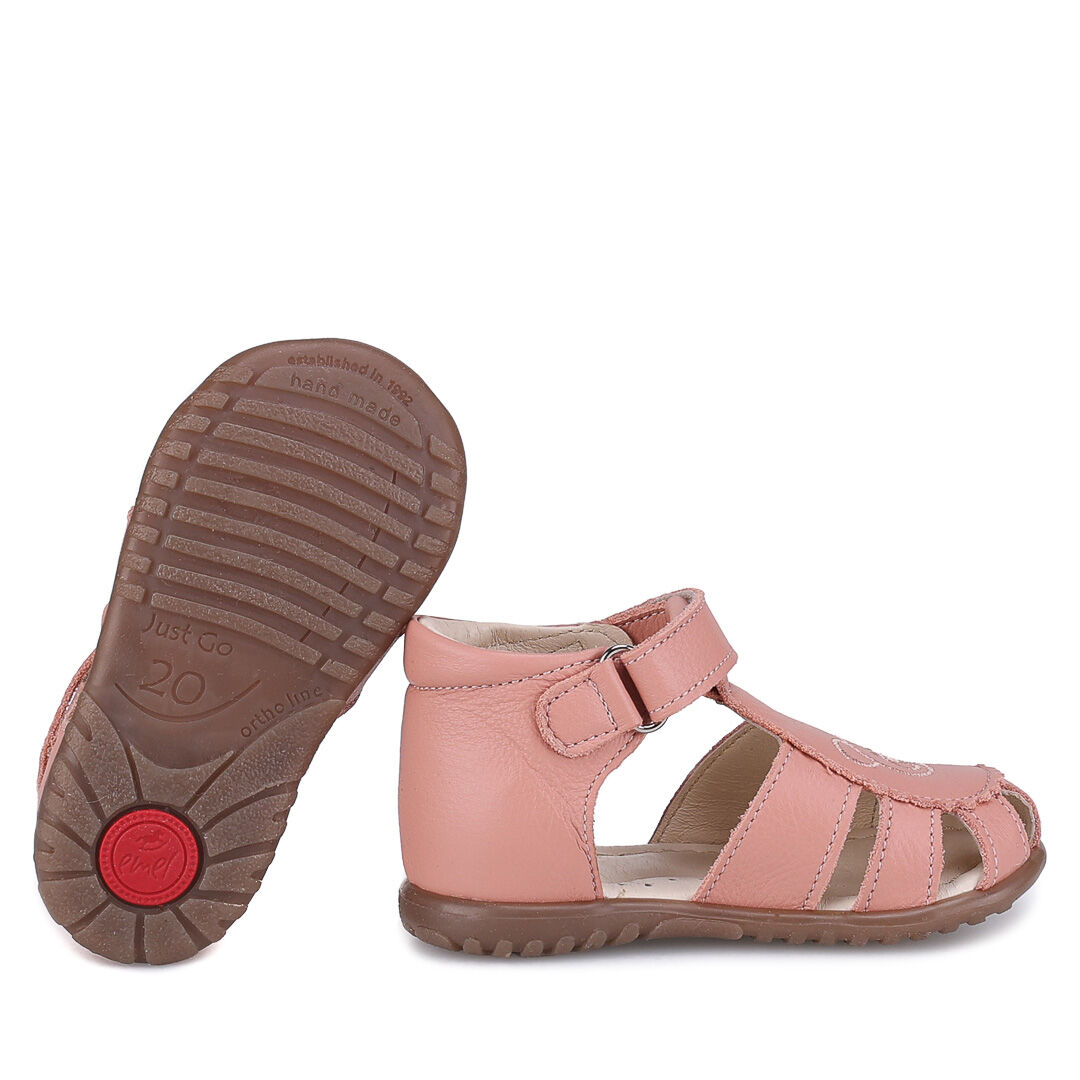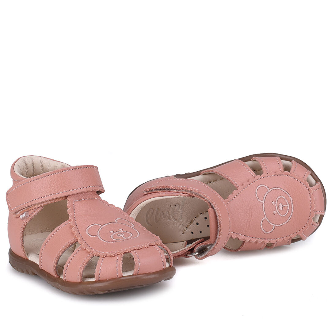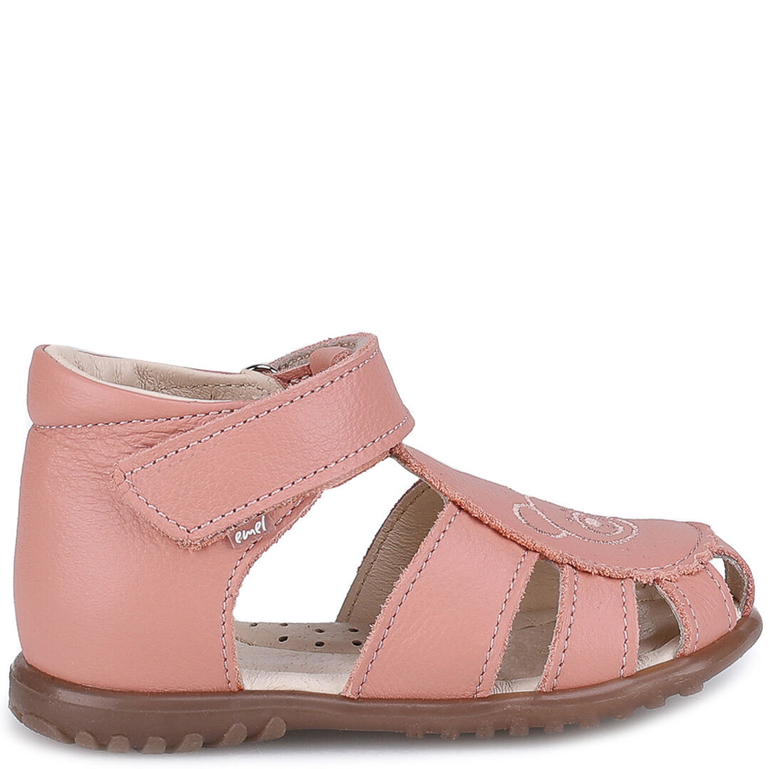 Sandały dziecięce Emel Texas w kolorze jasnego różu z zabudowanym przodem i stabilnym zapiętkiem