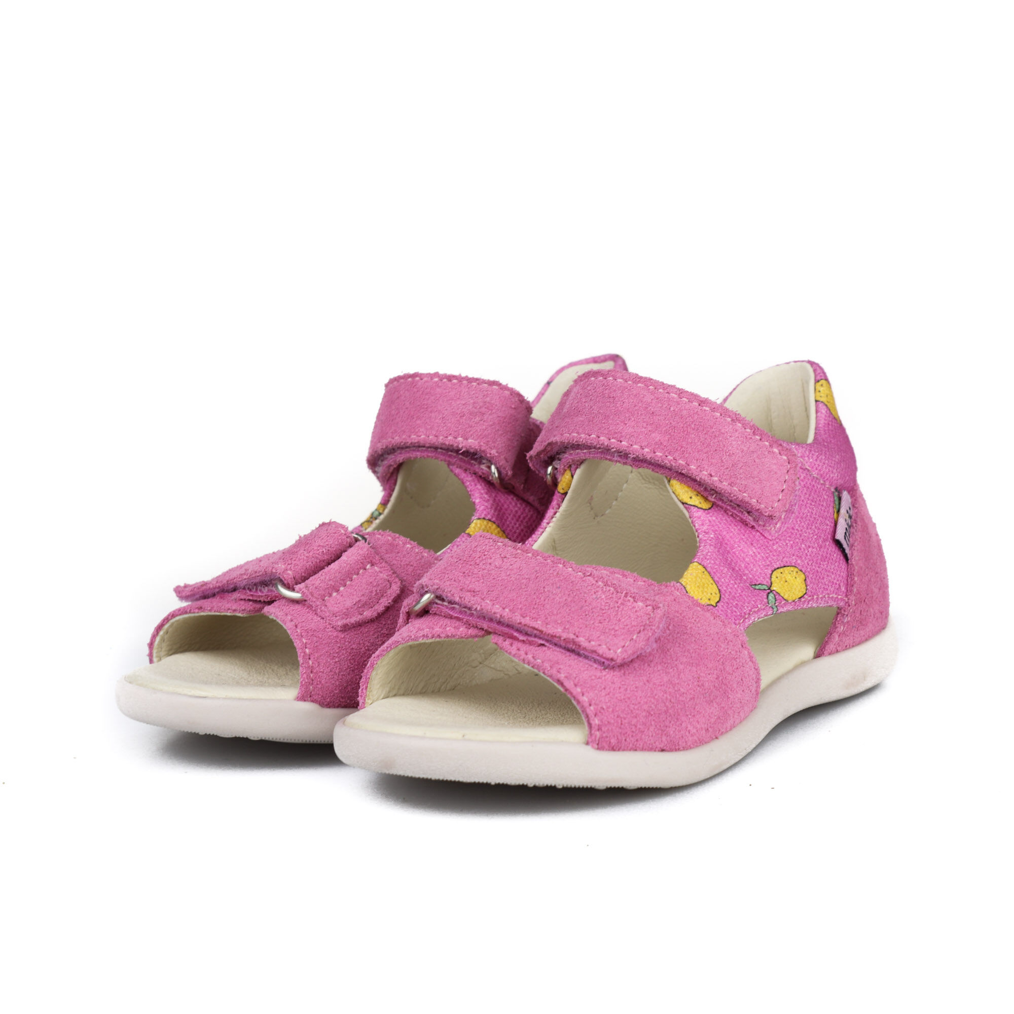 Skórzane sandały dziecięce Mido Shoes różowe z cytrynami