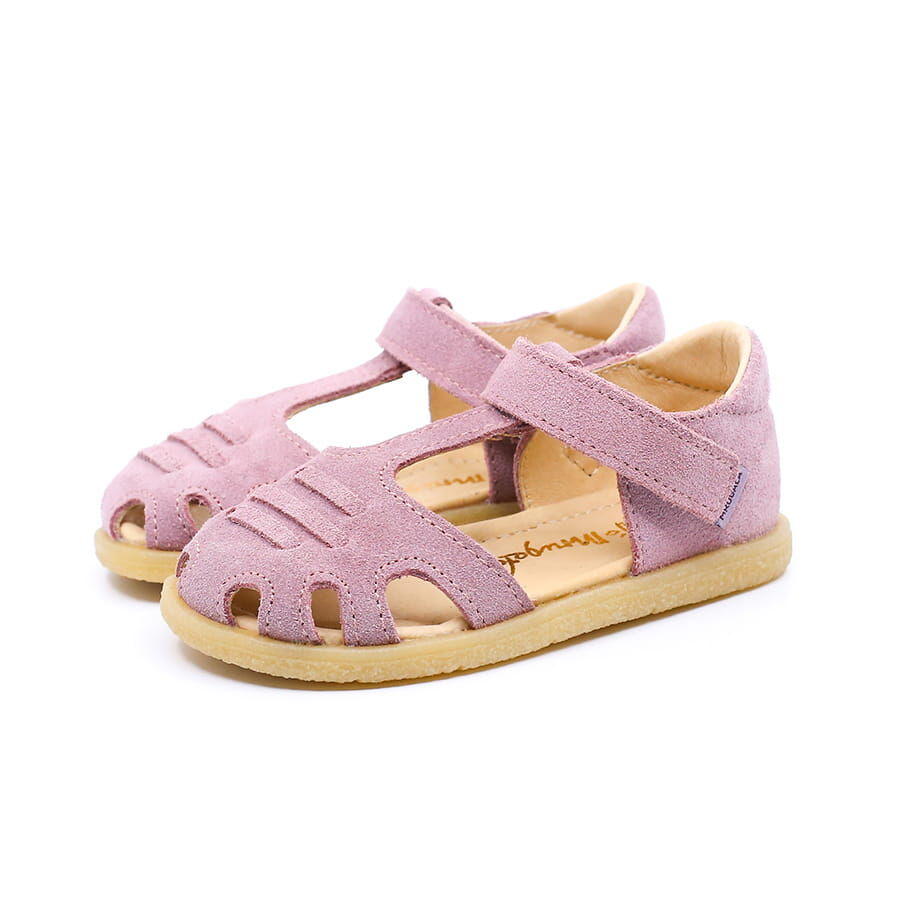 Sandały dziewczęce wykonane ze skóry naturalnej welurowej , w kolorze lila