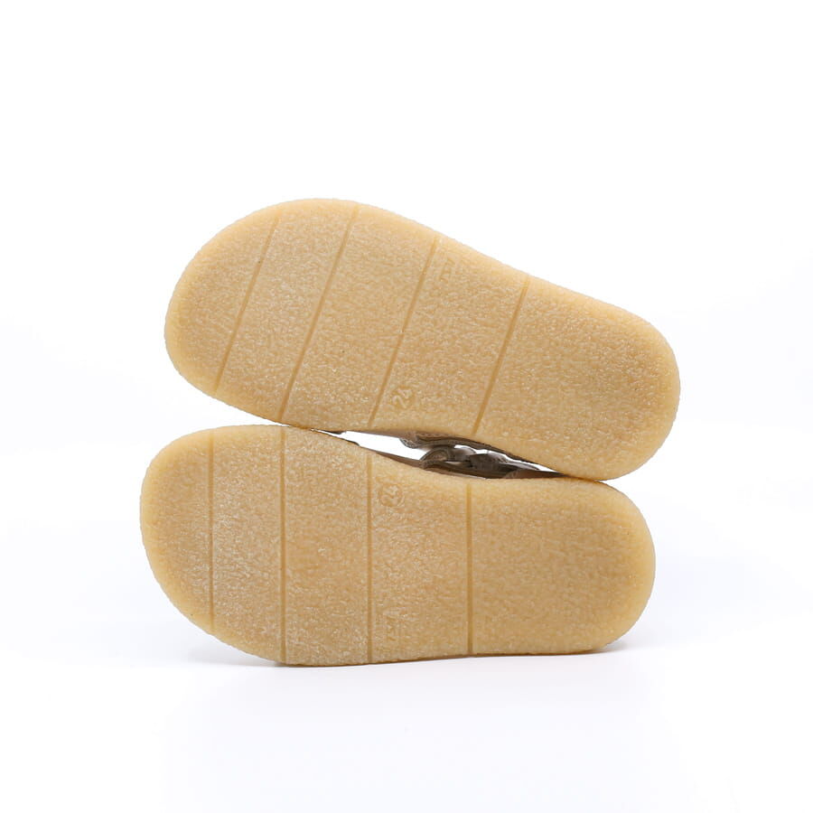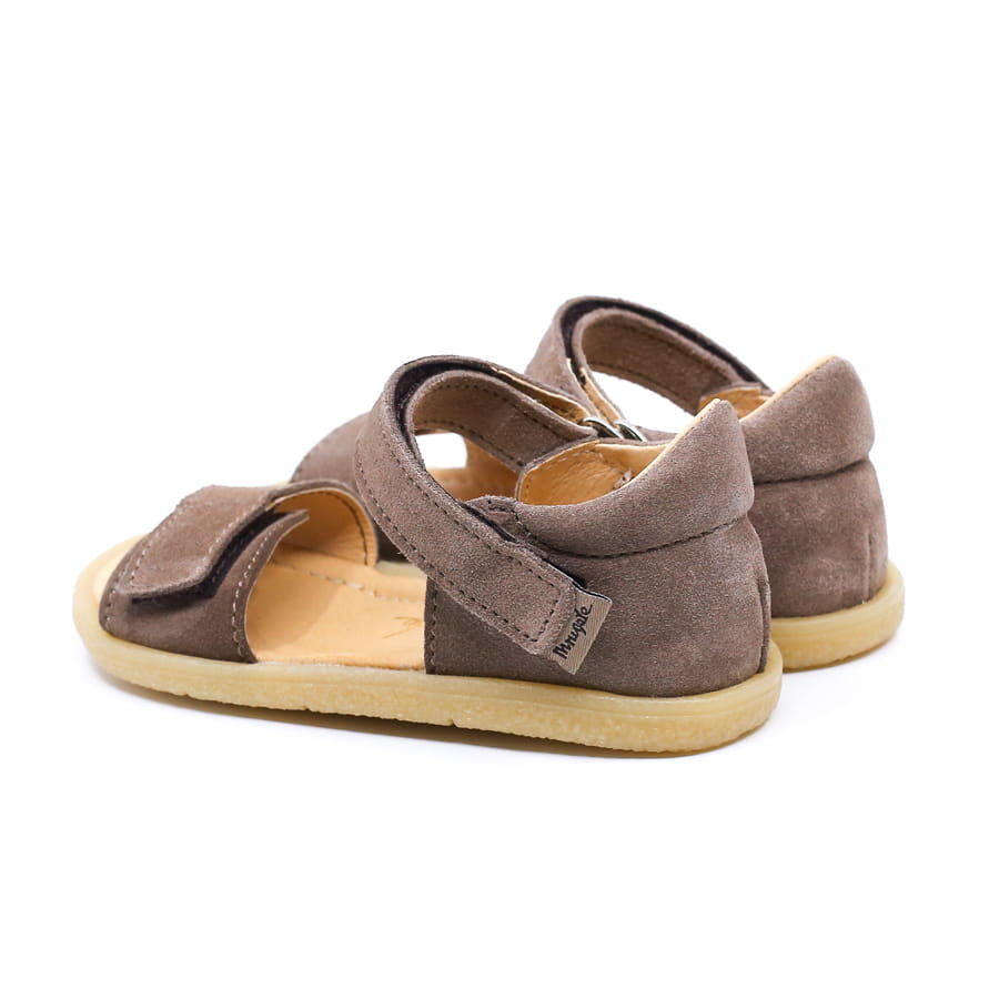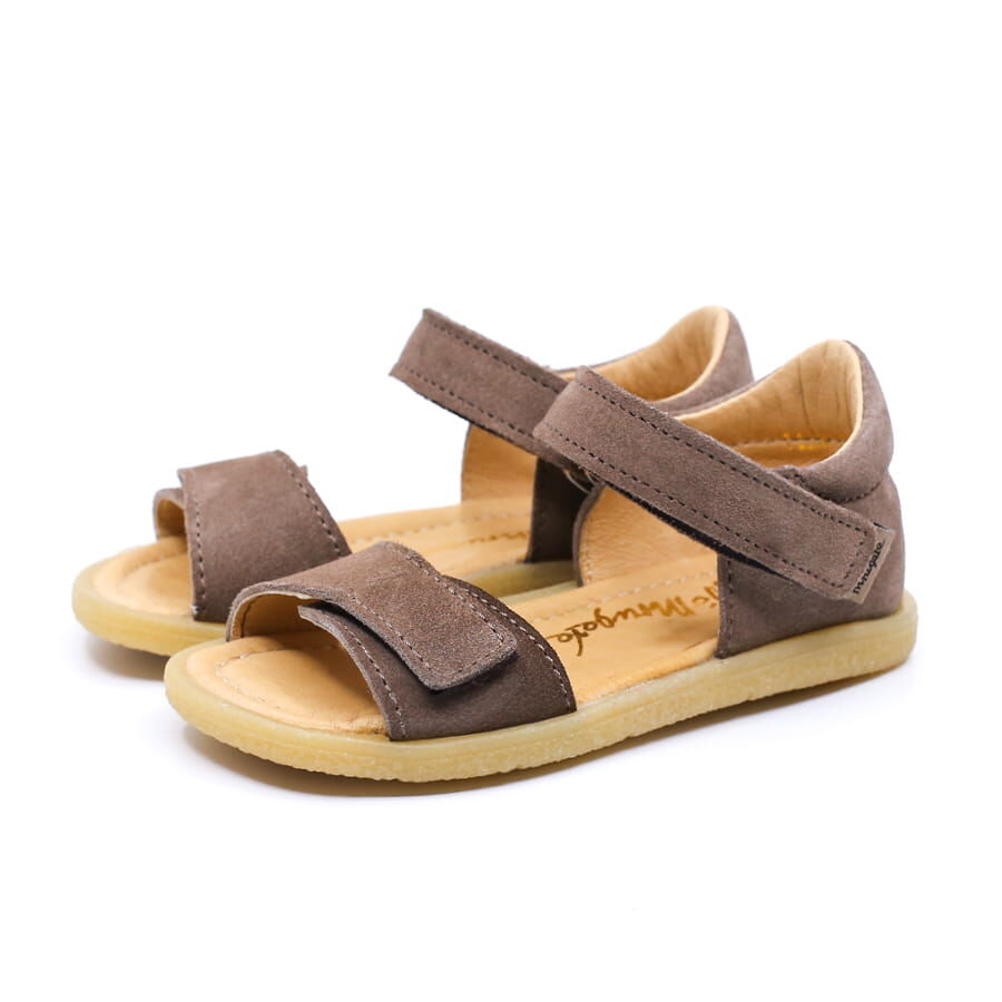 Sandały dziewczęce wykonane ze skóry naturalnej welurowej , w naturalnym brązowym kolorze