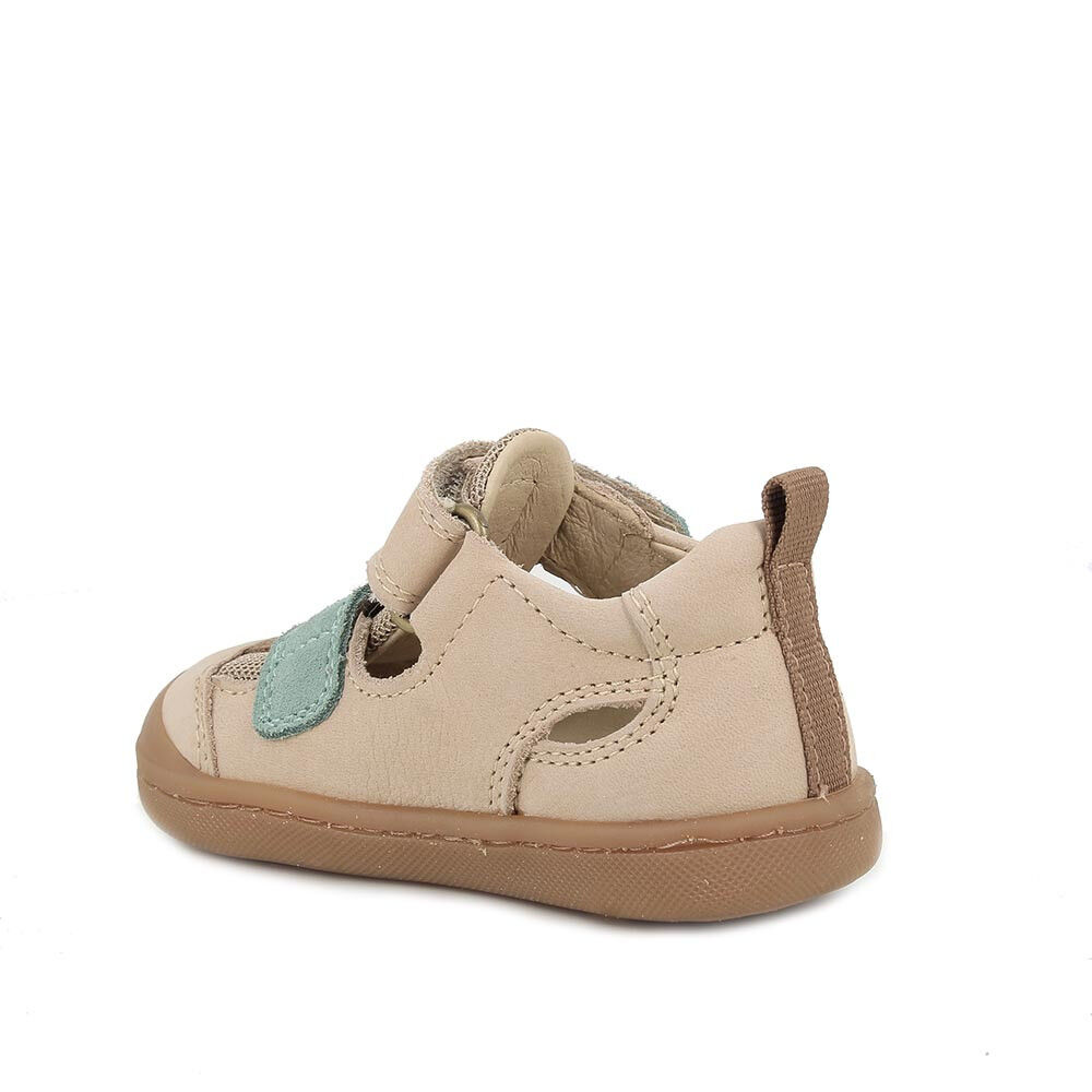 Sandały First Step zapinane na palcach i otwarte po bokach, idealnie chronią stopę, zapewniając jednocześnie dobrą wentylację. Posiadają zapięcie na rzep u góry i dodatkowy system regulacji z przodu, co zapewnia stabilne i wygodne dopasowanie. Skórzana podszewka i wkładka zapewniają miękką i oddychającą powierzchnię. Wytrzymała i elastyczna podeszwa gwarantuje doskonałą przyczepność i stabilność.