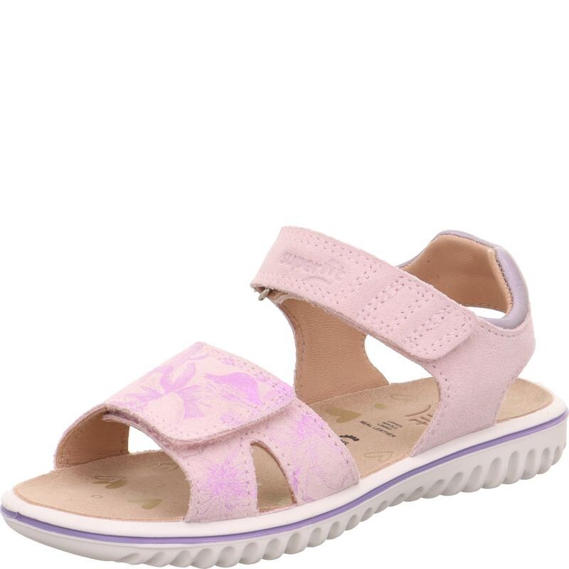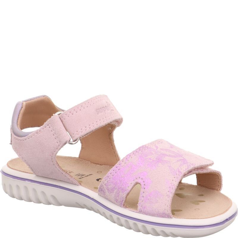 Sandały dla dziewczynki SPARKLE mają paski w kolorze pastelowego różu ozdobione błyszczącym printem