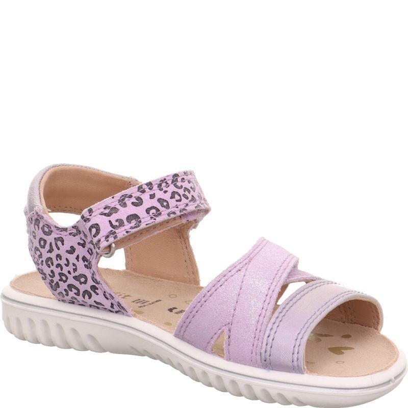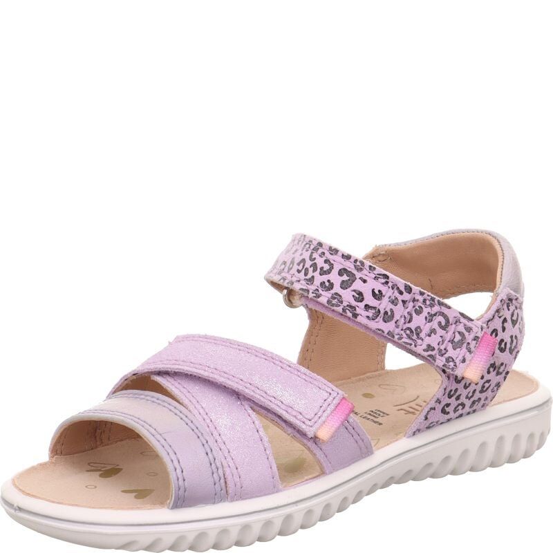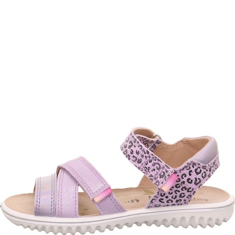 Sandały dla dziewczynki SPARKLE ma paski w kolorze fioletowym ozdobione subtelnym brokatem oraz motywem panterki