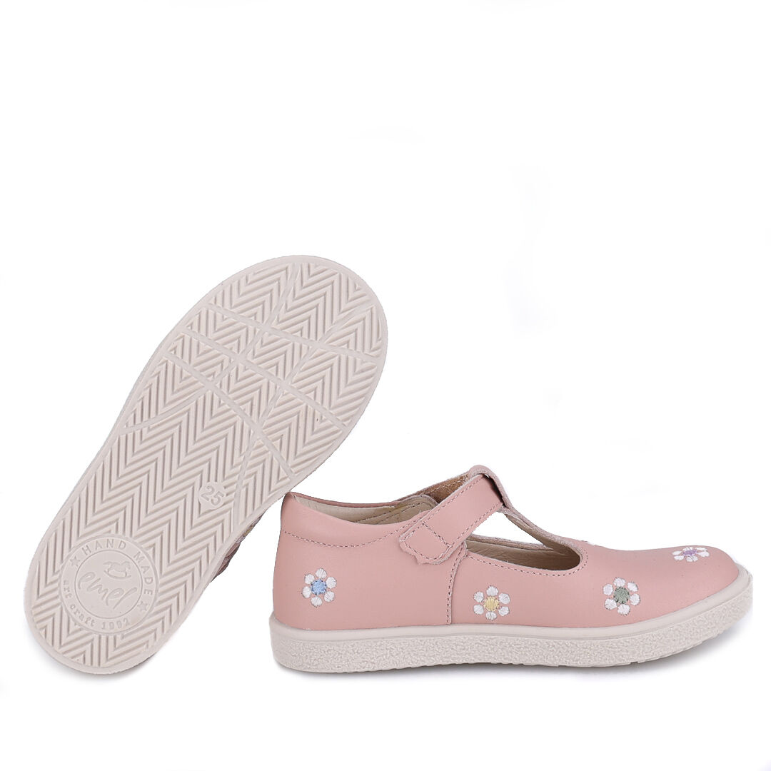Baleriny dziewczęce o sportowym kroju wykonane ze skóry naturalnej nubukowe w kolorze żywej fuksji osadzone na kontrastowej zielonej podeszwie
