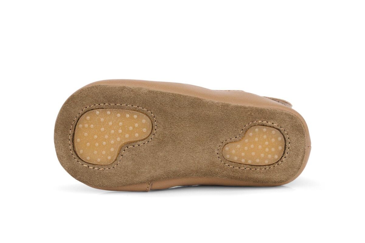 - Kapcie te wykonywane są w Polsce, z naturalnej skóry w różnych wariantach kolorystycznych. Buciki zalicza się do typu obuwia barefoot - w którym to dziecko czuje się swobodnie, jak na bosaka. Dodatkowo dla bezpieczeństwa w podeszwie zastosowano kauczukowe wstawki, które są antypoślizgowe. Kapcie dla komfortu zakładania oraz większej możliwości regulacji tęgości wyposażone są w zapinanie na rzepy. Buciki dzięki swojej budowie oraz wykorzystanym materiałom są wyjątkowo przewiewne oraz oddychające. Doskonale sprawdzą się jako kapcie do domu czy przedszkola, a w wersji outdoor również jako sandałki na zewnątrz.