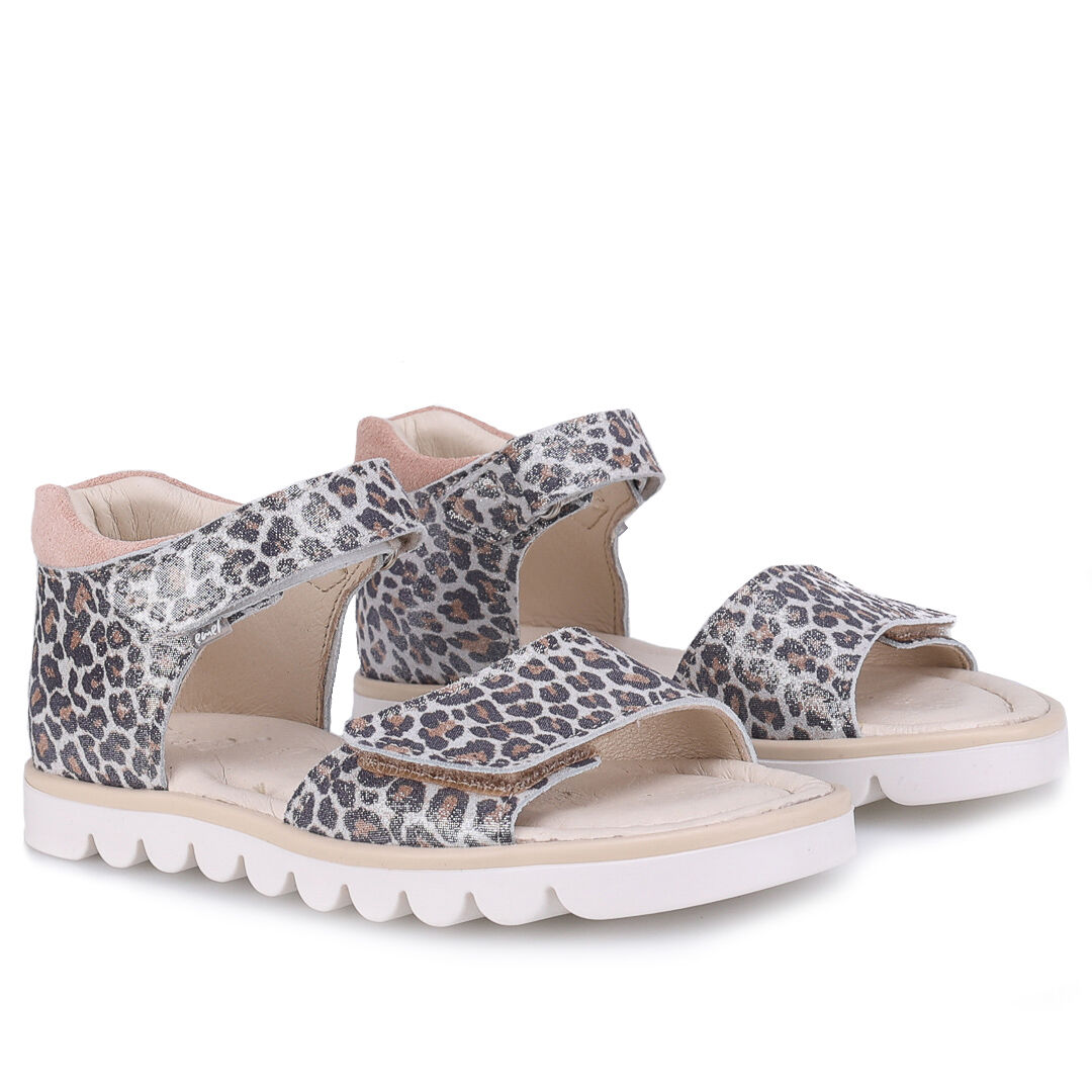 Sandały dla dziewczynki wykonane ze skóry naturalnej laminowanej, wolnej od chromu