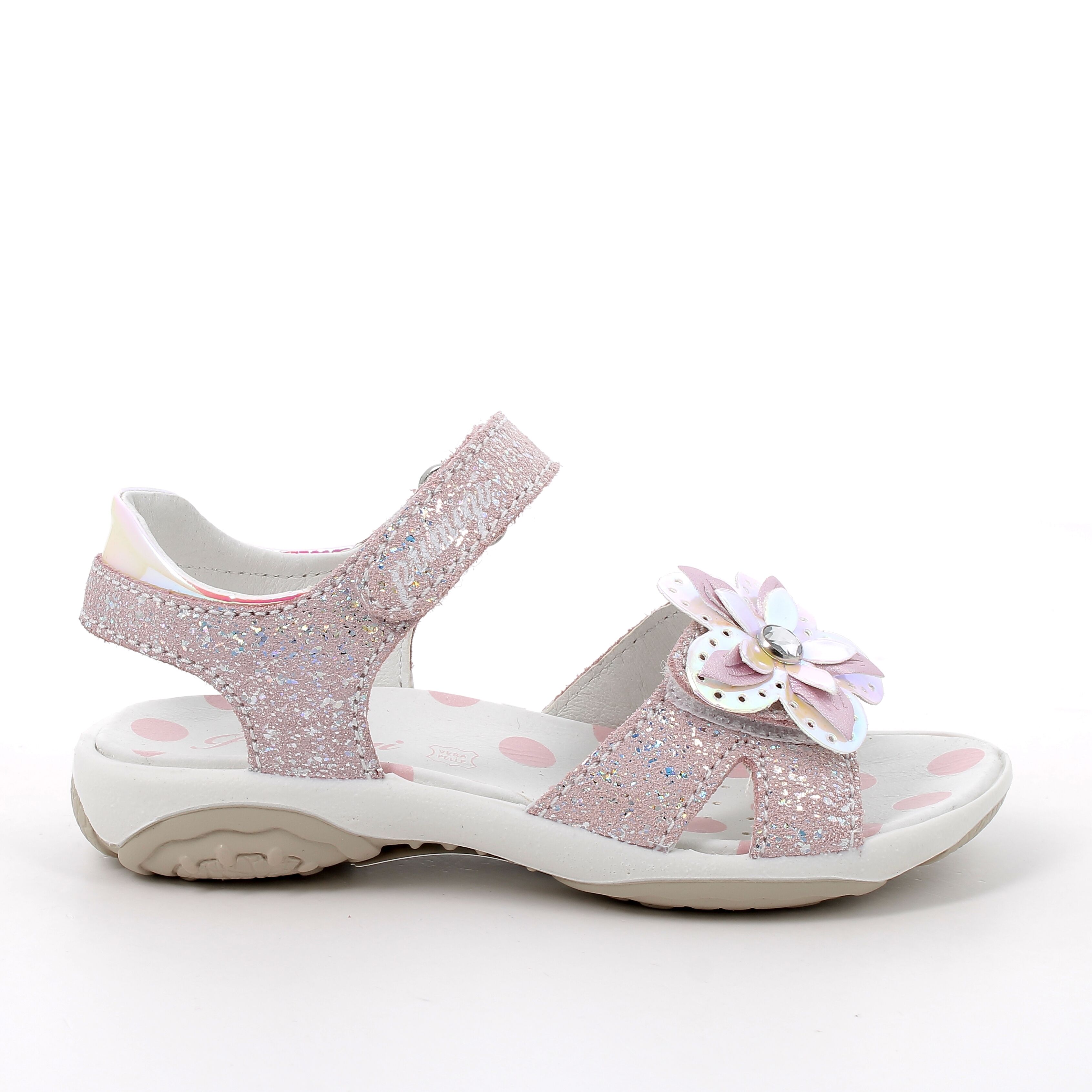 Lekkie i elastyczne sandały dla dziewczynki w różowym kolorze z mieniącymi się drobinkami