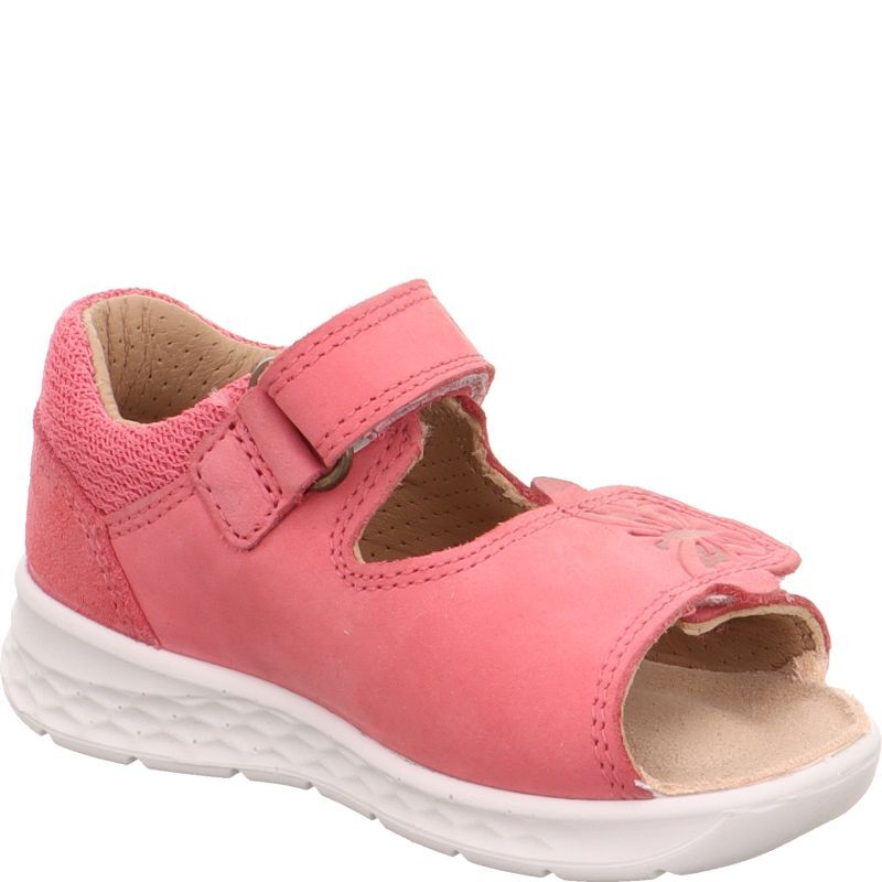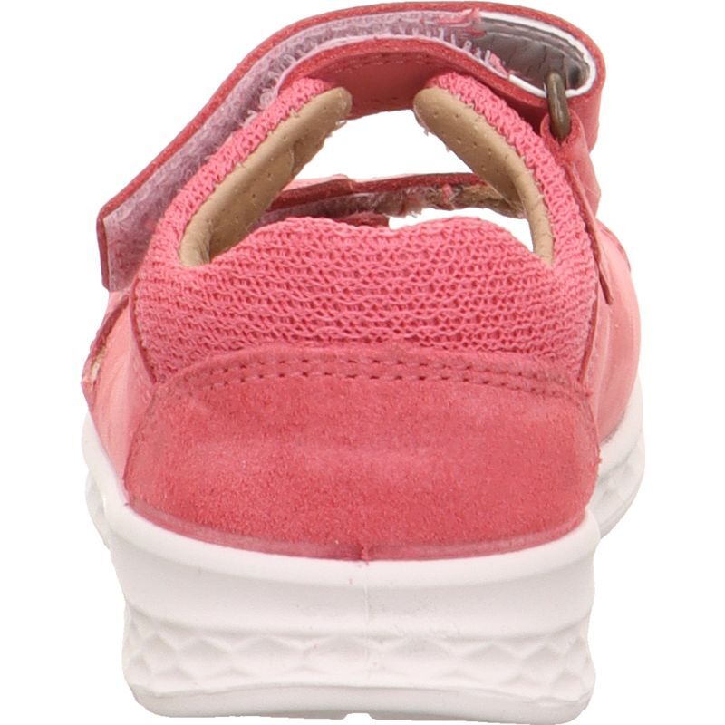 Miękka, amortyzująca skórzana wkładka sandałów Lagoon malinowych oraz elastyczne podeszwy zapewniają dziecku komfort i pozwalają na naturalny swobodny ruch stopyStabilny zapiętek ma odpowiednią wysokość tak by nie krępować pracy stopy w kostce.