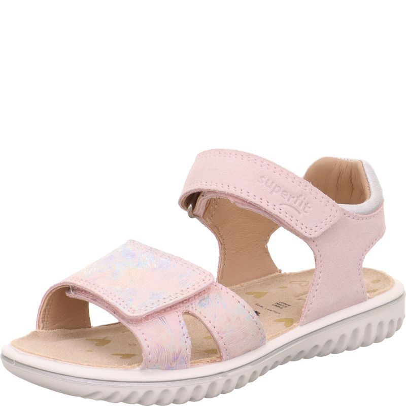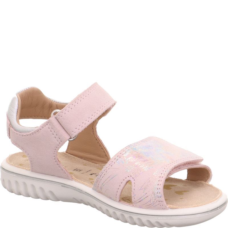 Sandały dla dziewczynki SPARKLE mają paski w kolorze pastelowego różu ozdobione błyszczącym printem