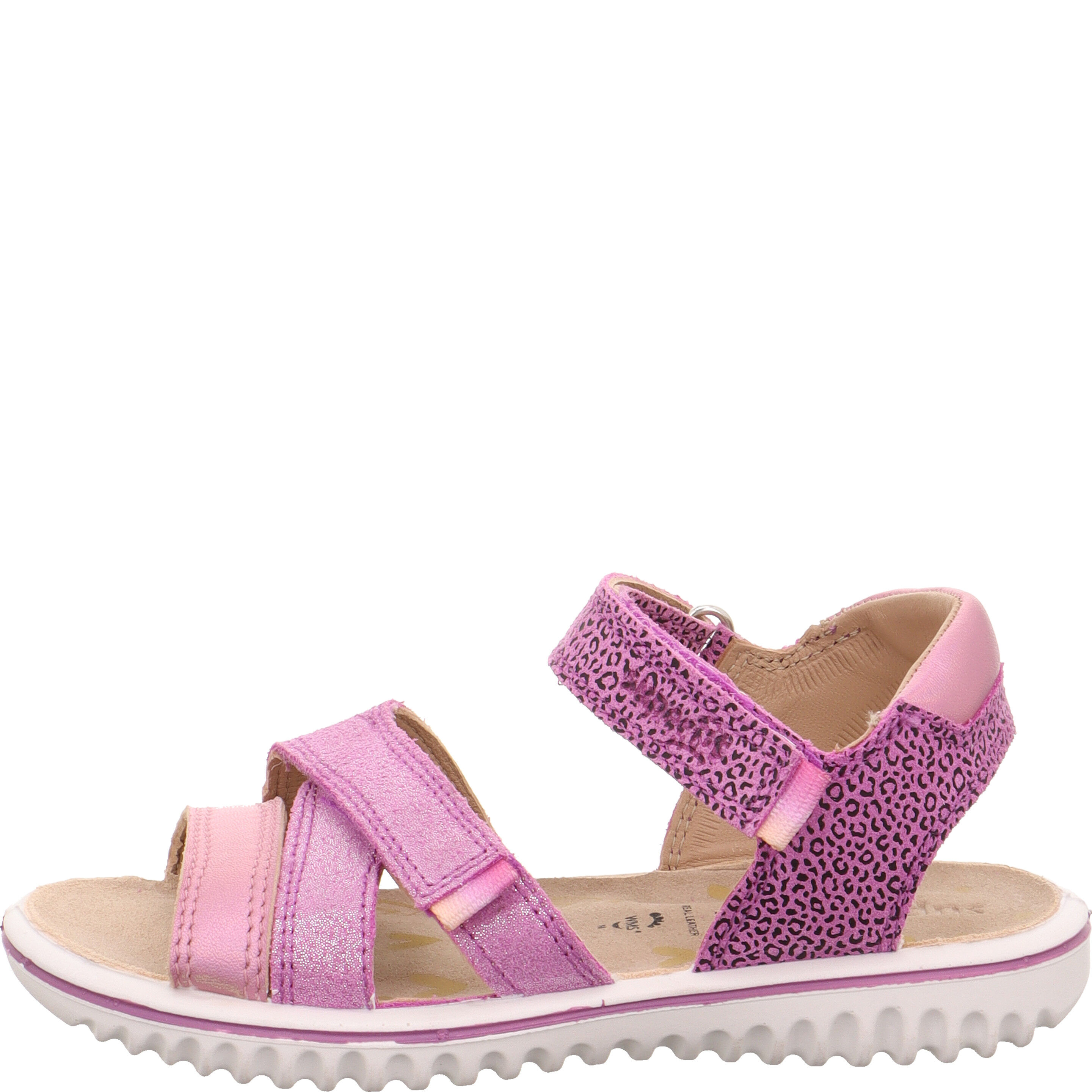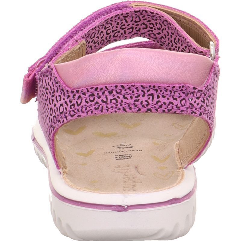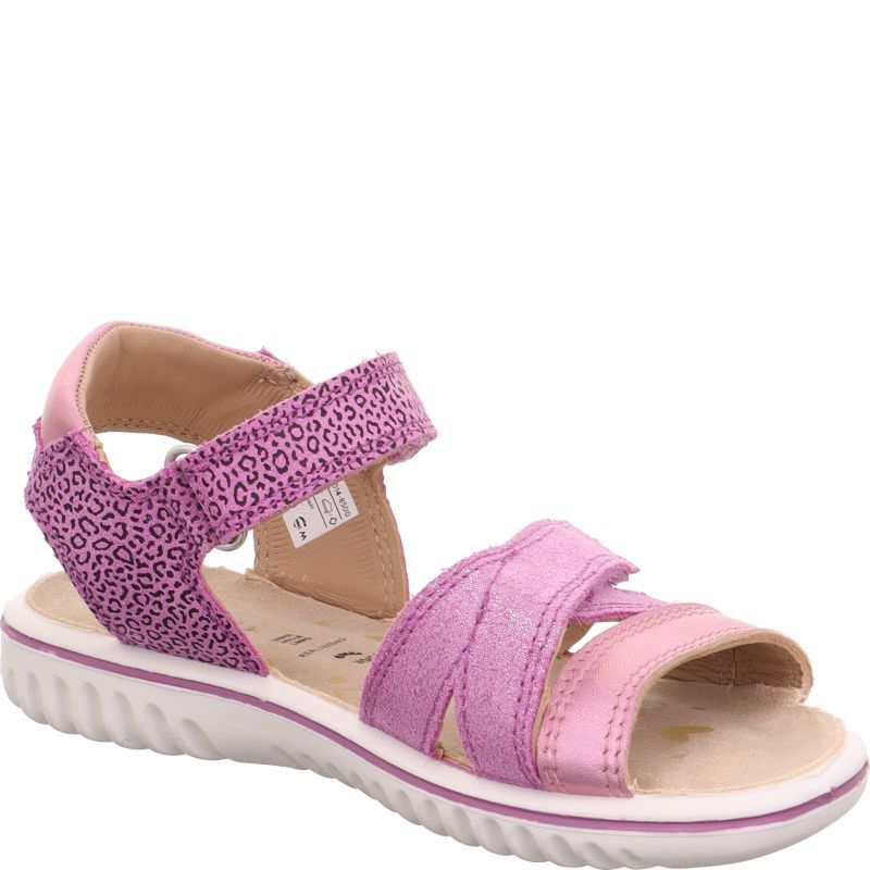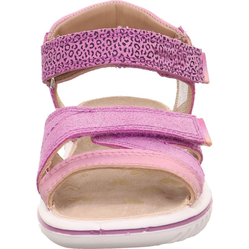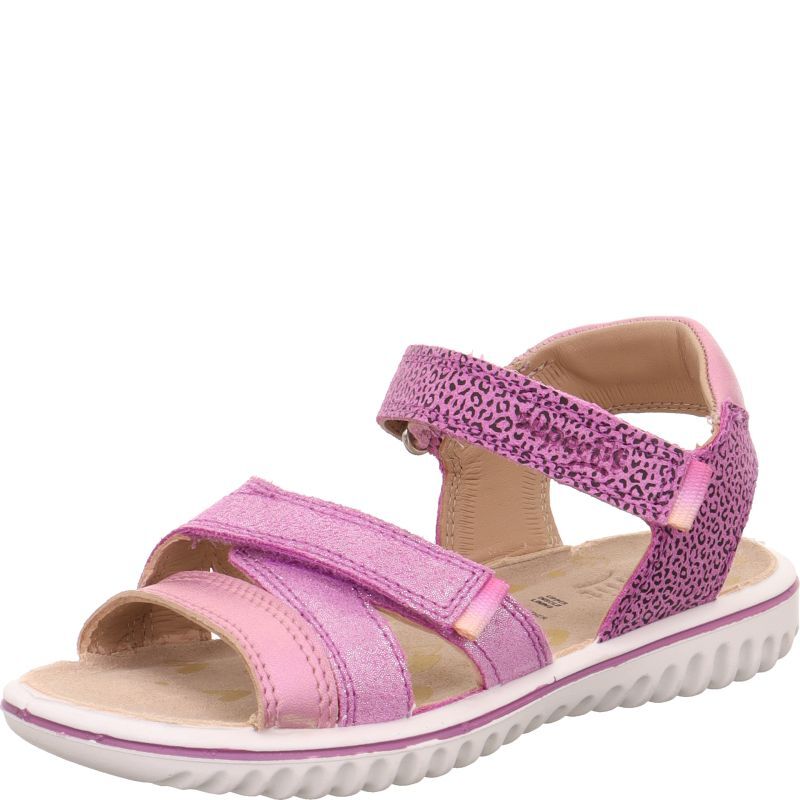 Sandały dla dziewczynki SPARKLE ma paski w kolorze fioletowym ozdobione subtelnym brokatem oraz motywem panterki