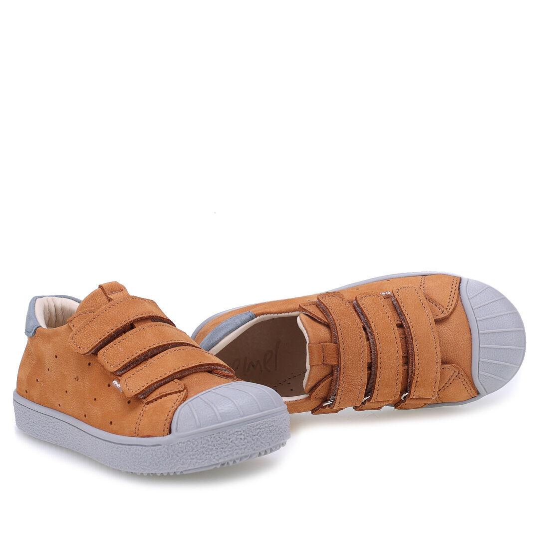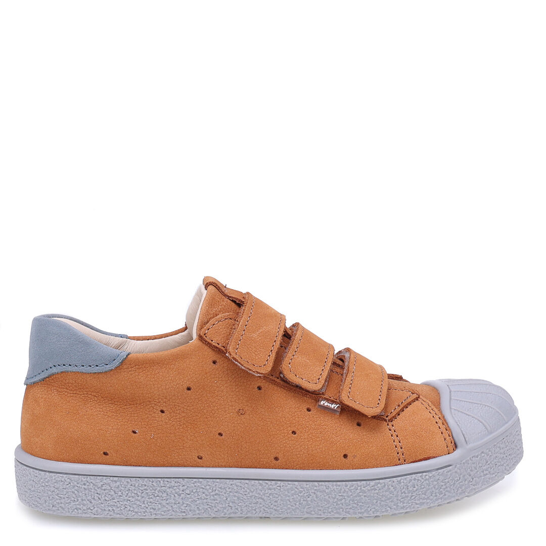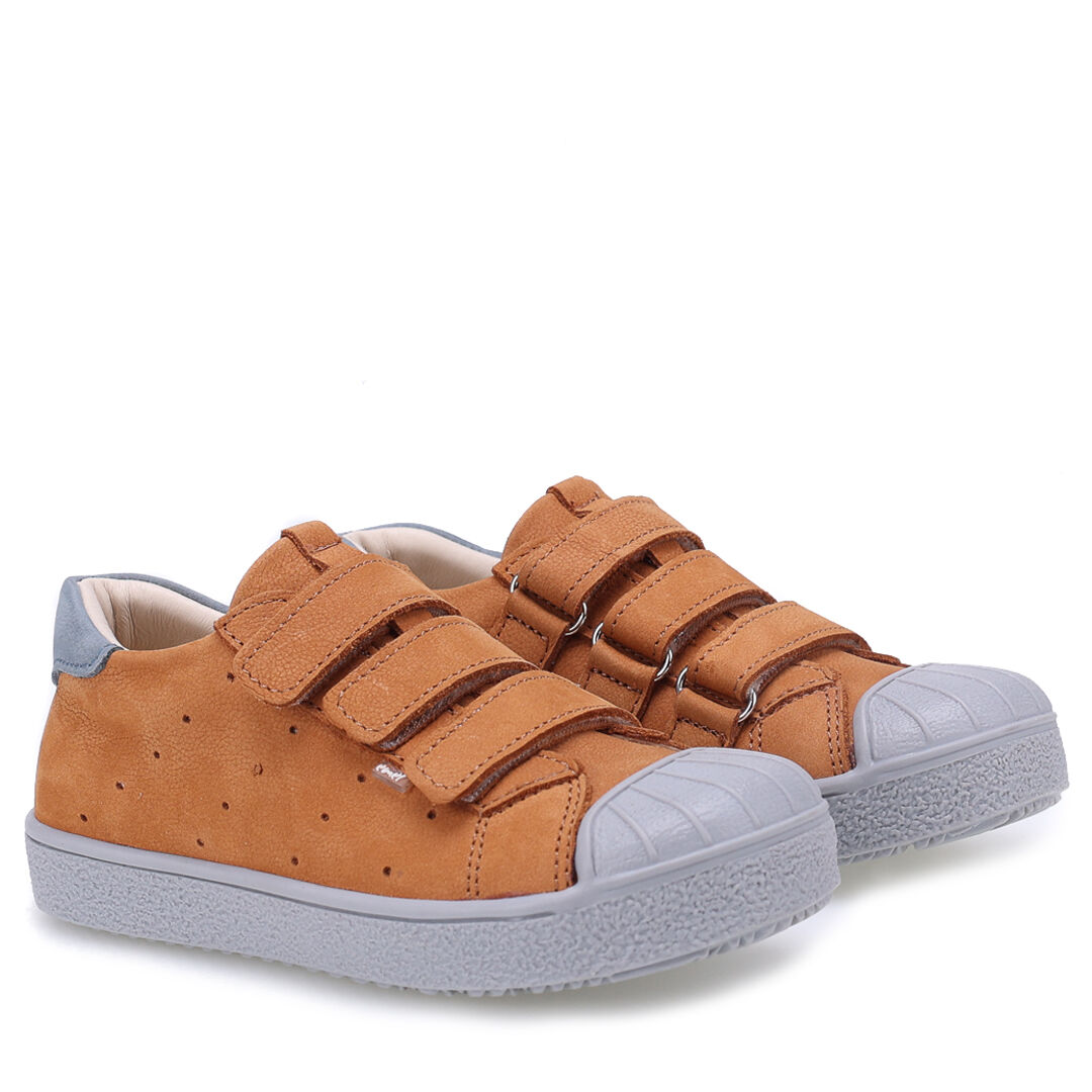 Trampki chłopięce zapinane na rzepy wykonane ze skóry naturalnej nubukowej w kolorze pastelowego różu i fioletu