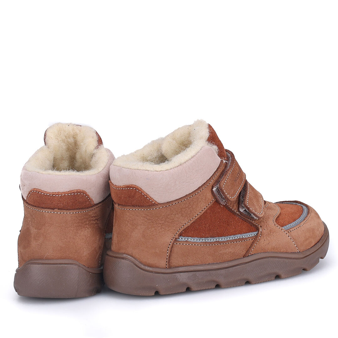 Brązowe trzewiki dziecięce zimowe Barefoot Emel Atlas wykonane zostały ze skóry naturalnej nubukowej. Śródpodszewkę w obuwiu stanowi membrana Te-por, która chroni przed przemakaniem i zapewnia "oddychalność".