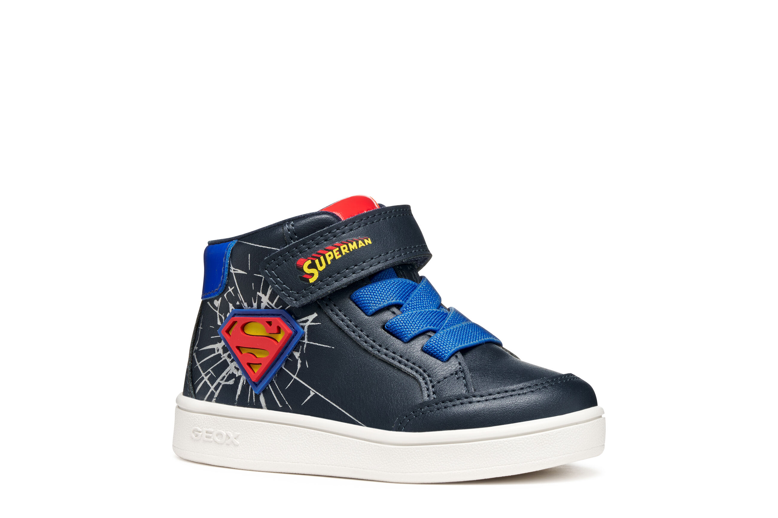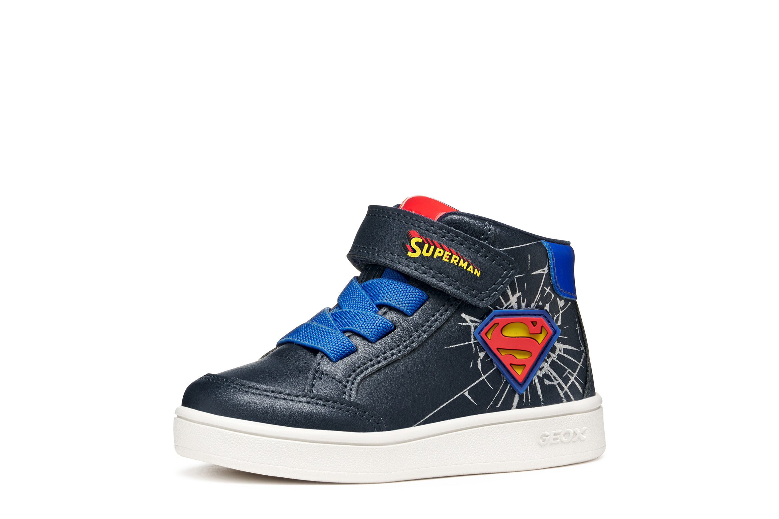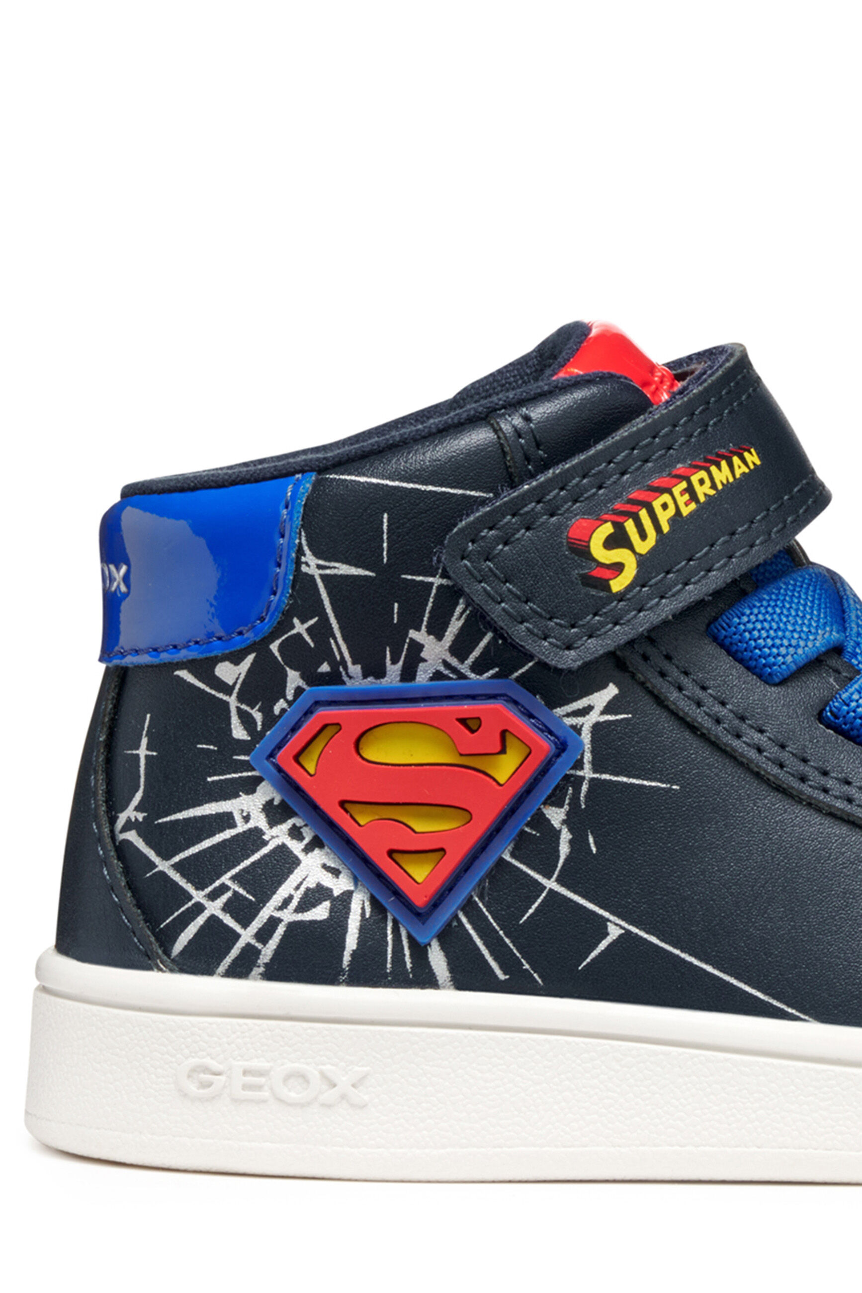 Buty sportowe dla chłopców, zaprojektowane we współpracy Geox i Warner Bros., charakteryzują się sportową, zabawną estetyką, która wyraża całą energię najpopularniejszego superbohatera SUPERMANA .
