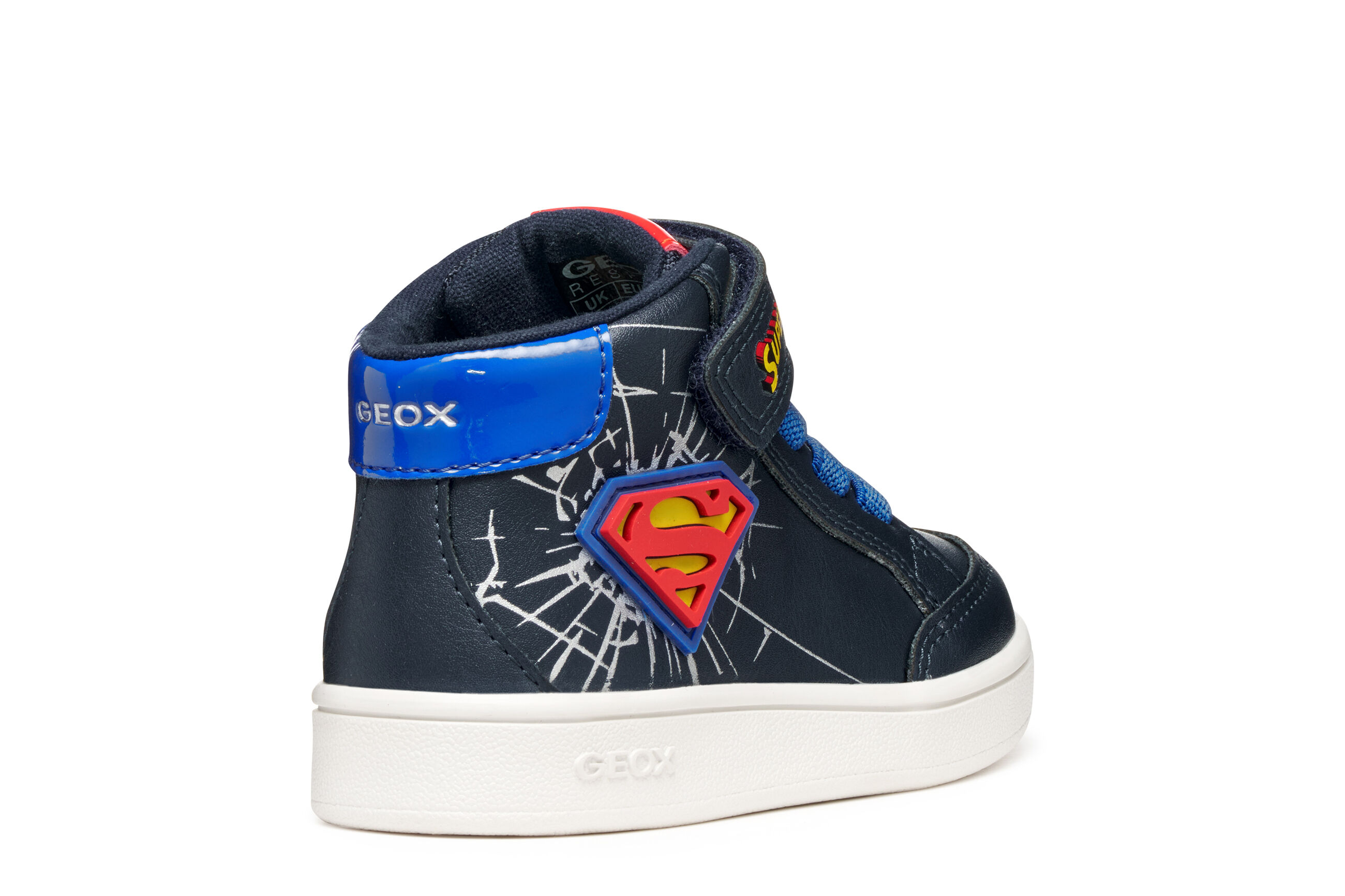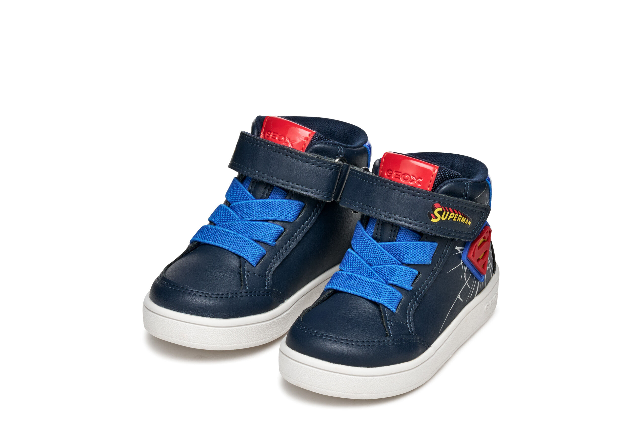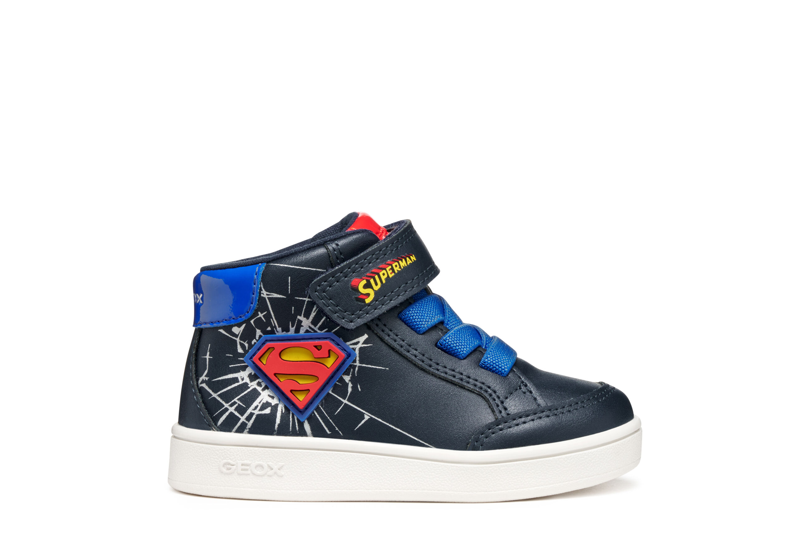 Buty sportowe dla chłopców, zaprojektowane we współpracy Geox i Warner Bros., charakteryzują się sportową, zabawną estetyką, która wyraża całą energię najpopularniejszego superbohatera SUPERMANA .