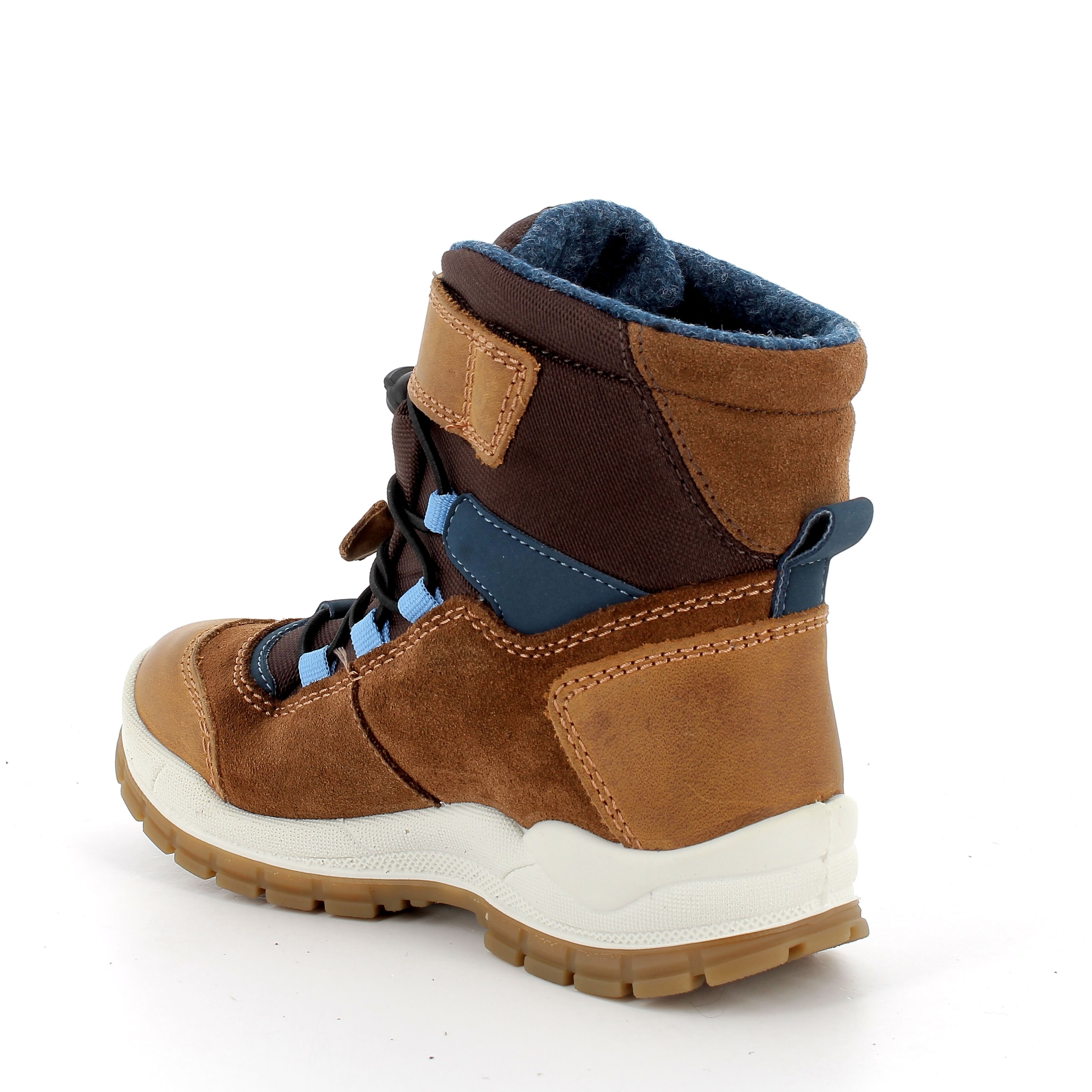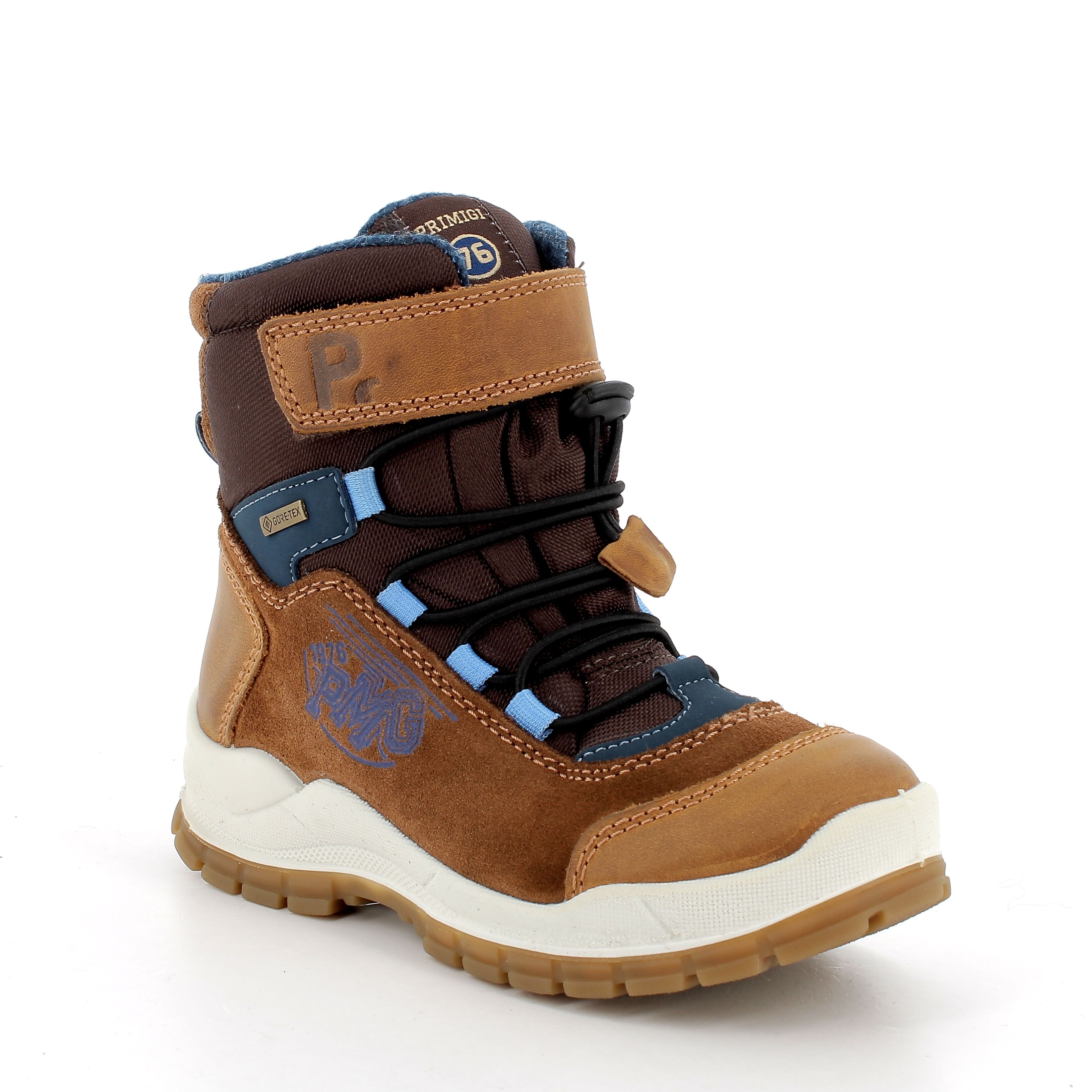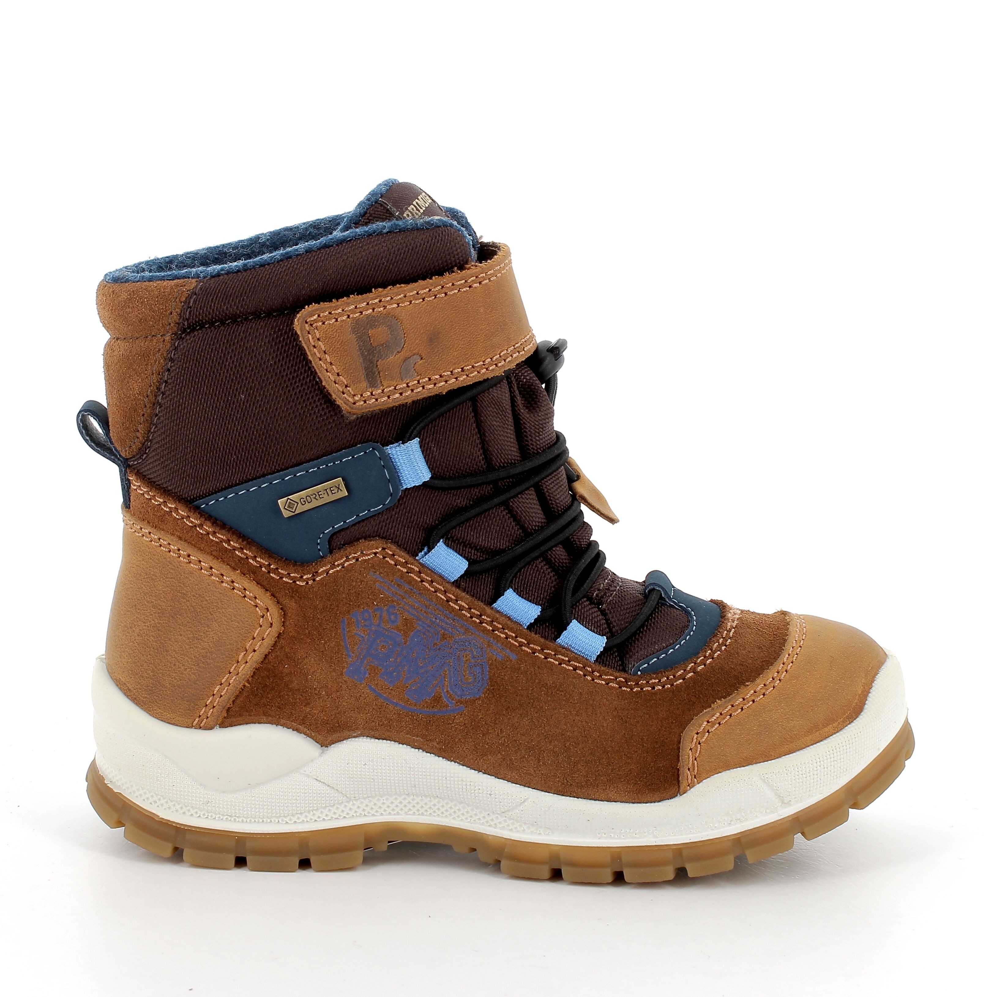 Brązowe śniegowce chłopięce Primigi wykonane są ze skóry naturalnej welurowej oraz materiałów tekstylnych odpornych przemakanie