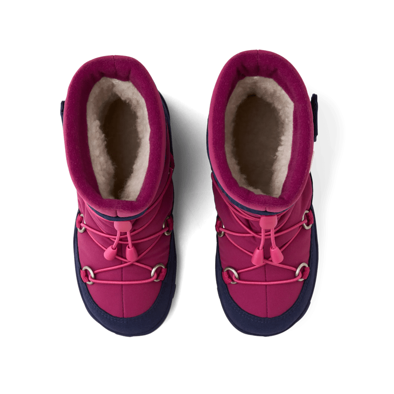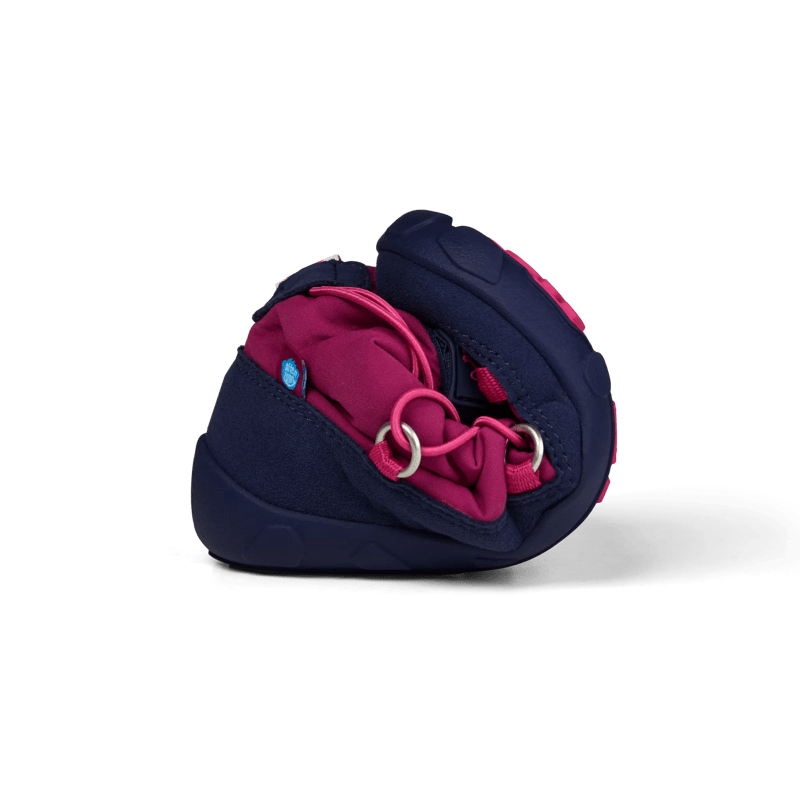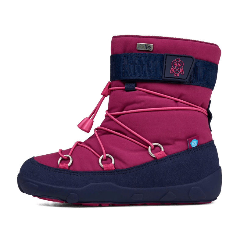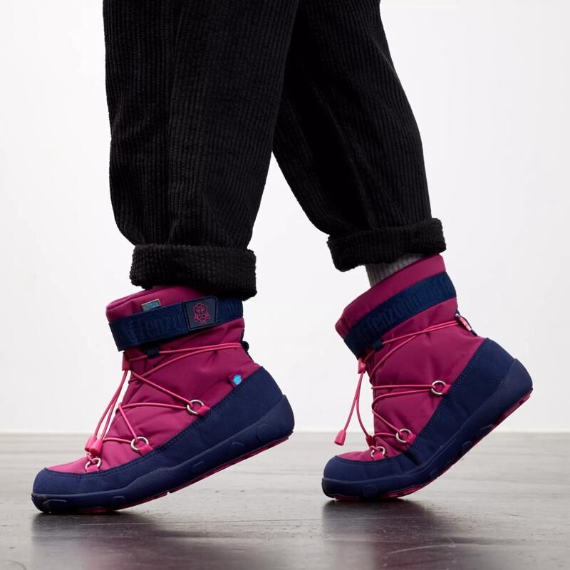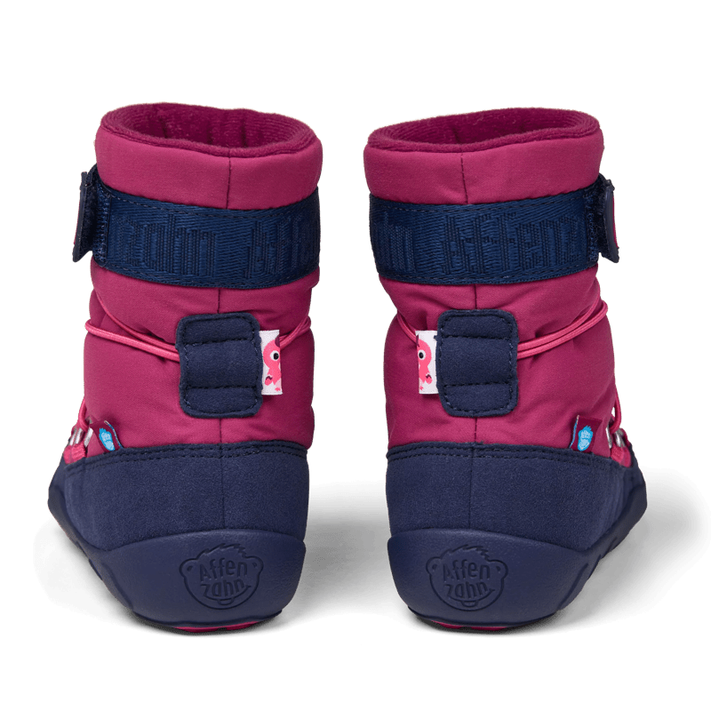 Różowo fioletowe śniegowce Barefoot Affenzahn Snowy są wyposażone w szereg funkcji: