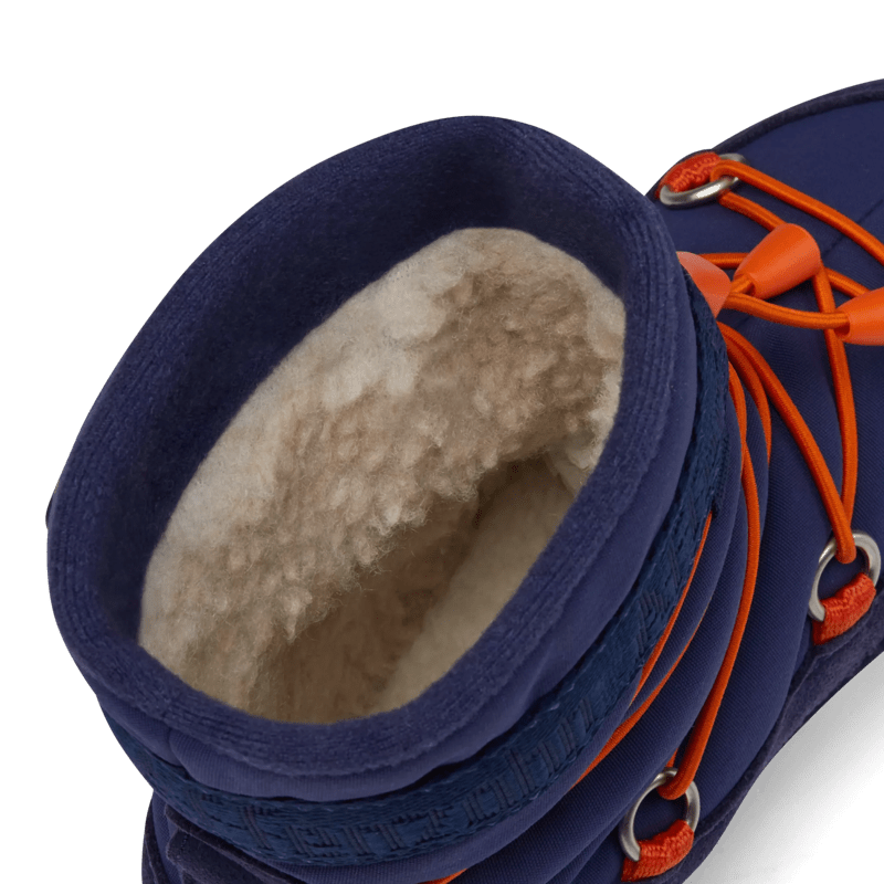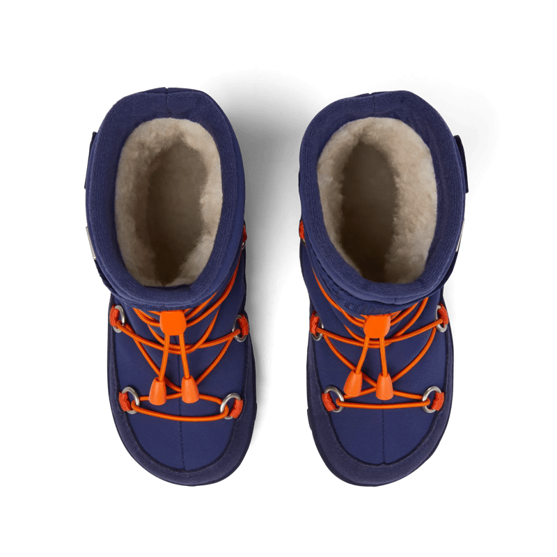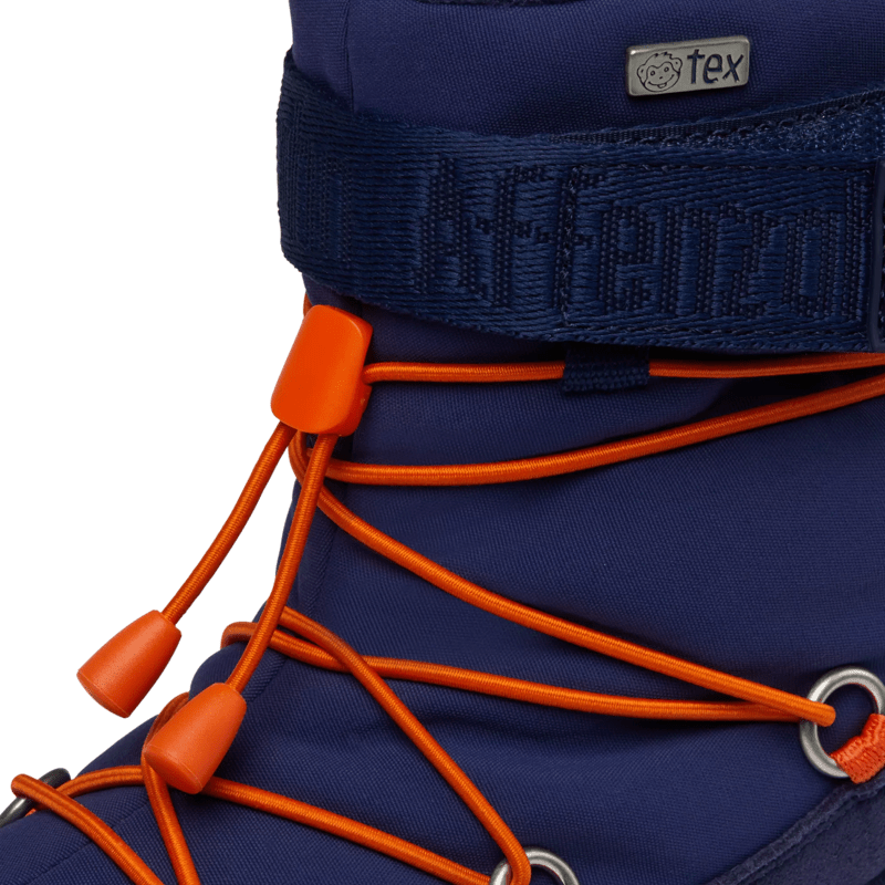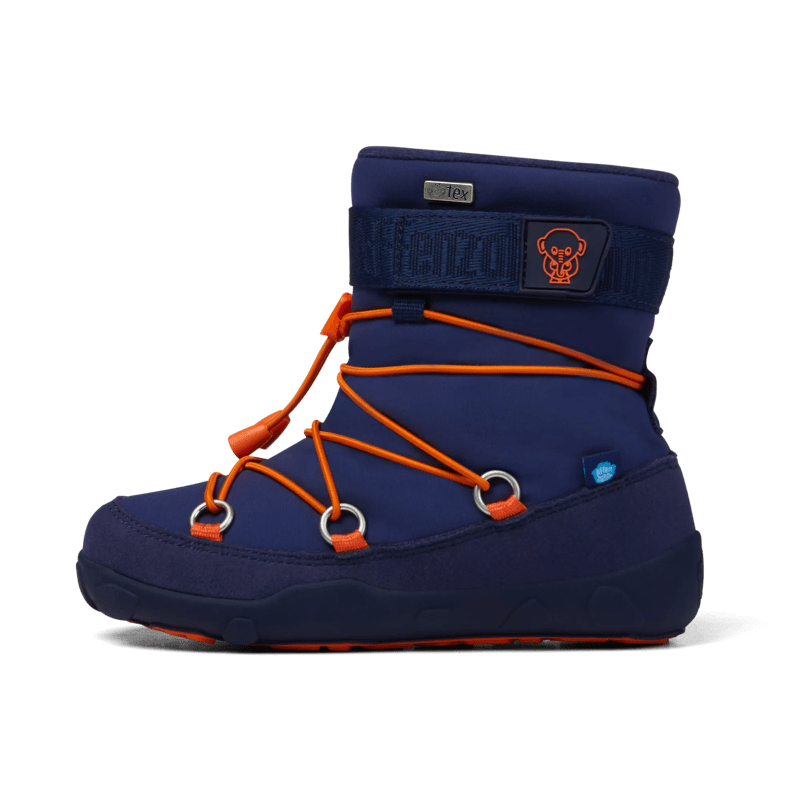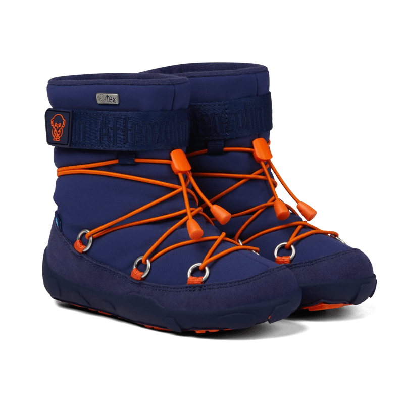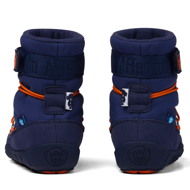 Niebiesko granatowe śniegowce Barefoot Affenzahn Snowy są wyposażone w szereg funkcji.