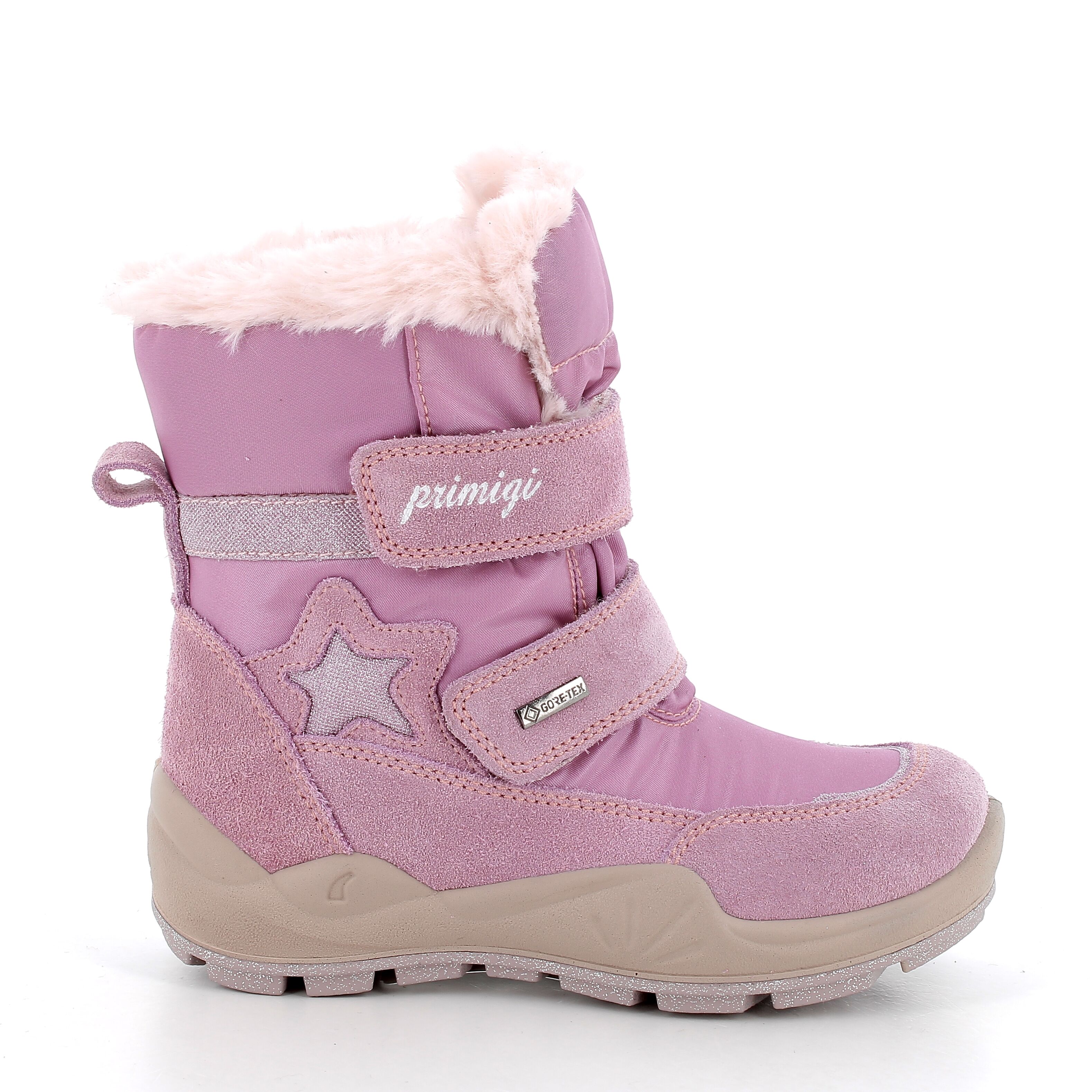 Śniegowce dla dziewczynki z wyższą cholewką, wyposażone w membranę Gore-tex, która chroni przed przemakaniem i zimnem nawet w bardzo niskich temperaturach