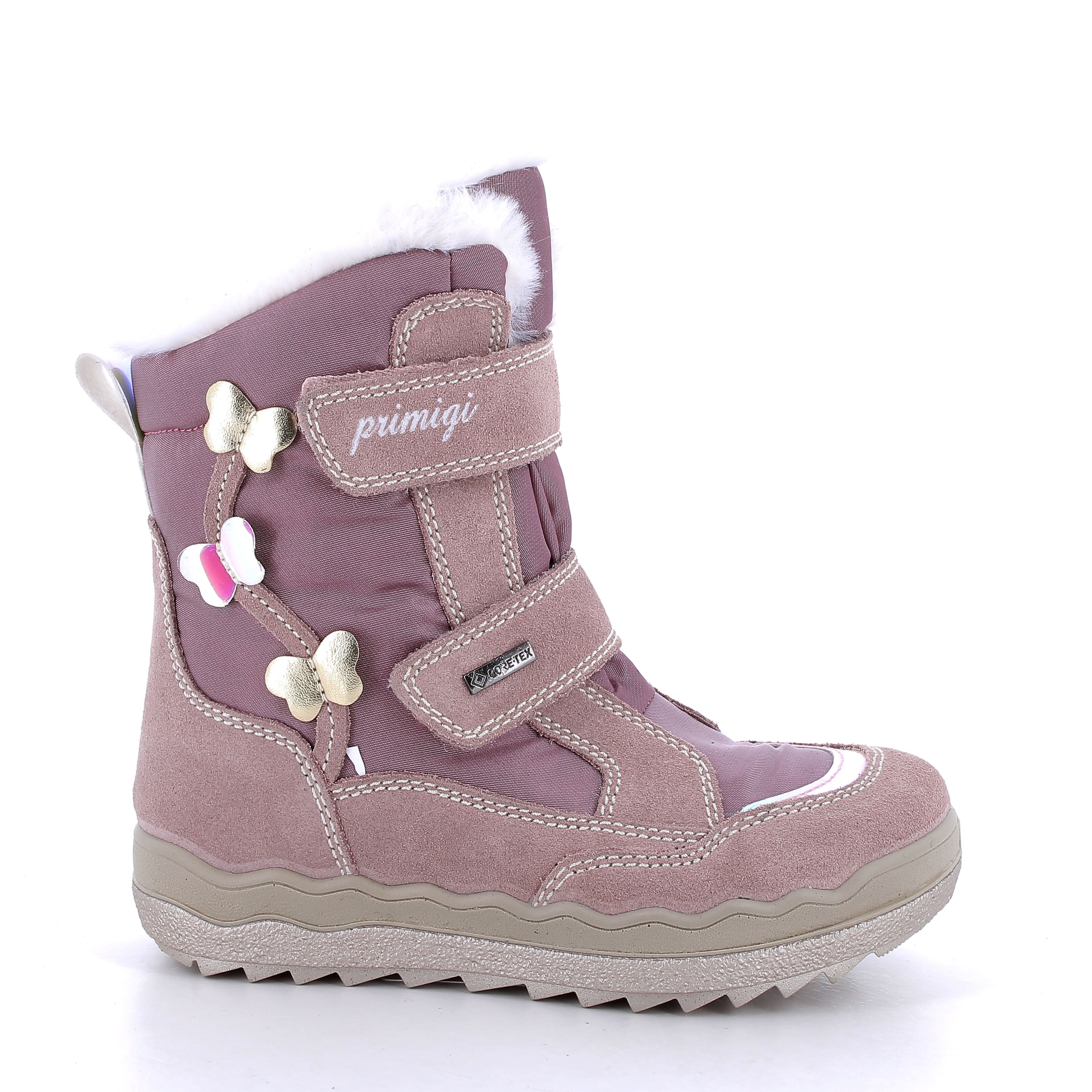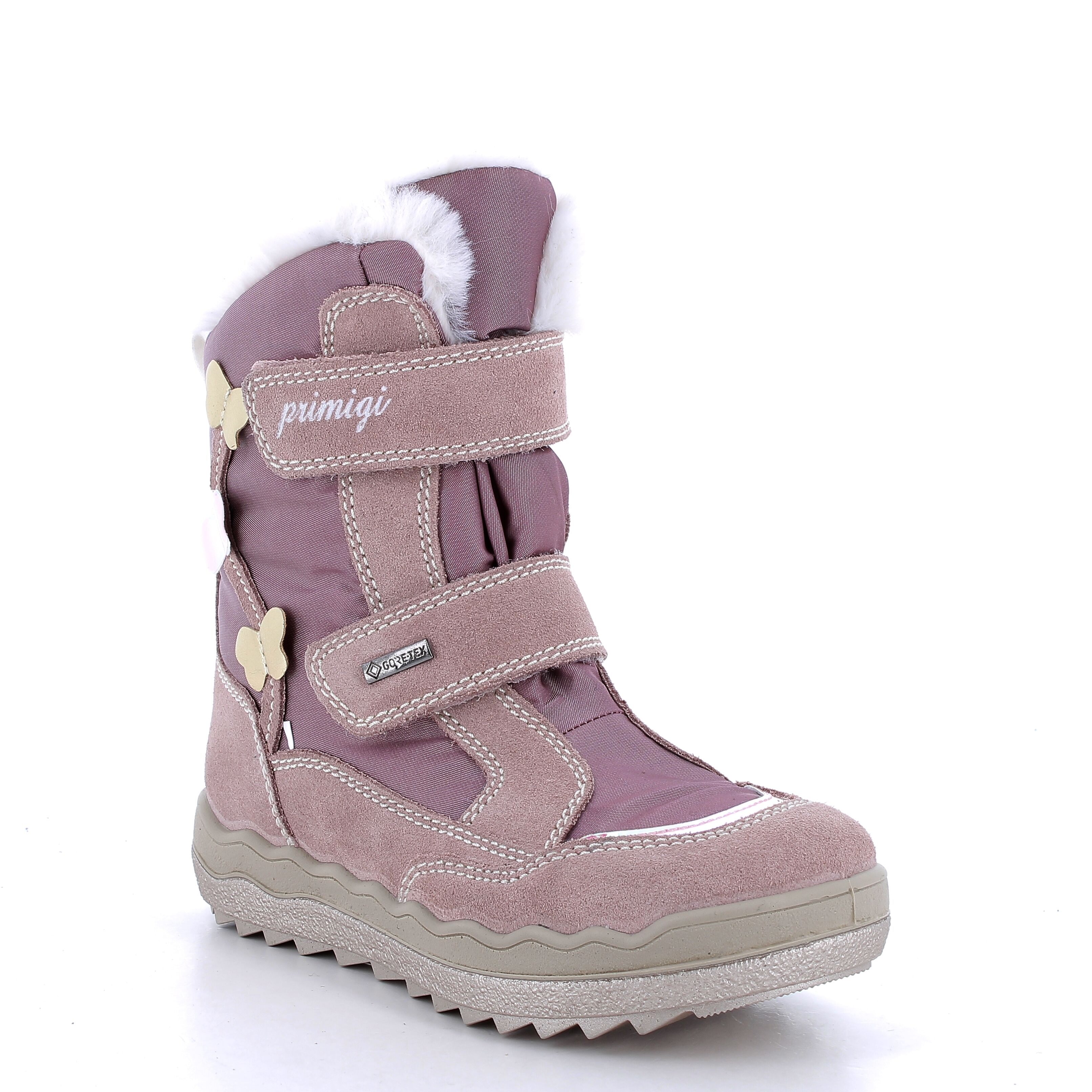 Śniegowce dla dziewczynki z wyższą cholewką, wyposażone w membranę Gore-tex, która chroni przed przemakaniem i zimnem nawet w bardzo niskich temperaturach