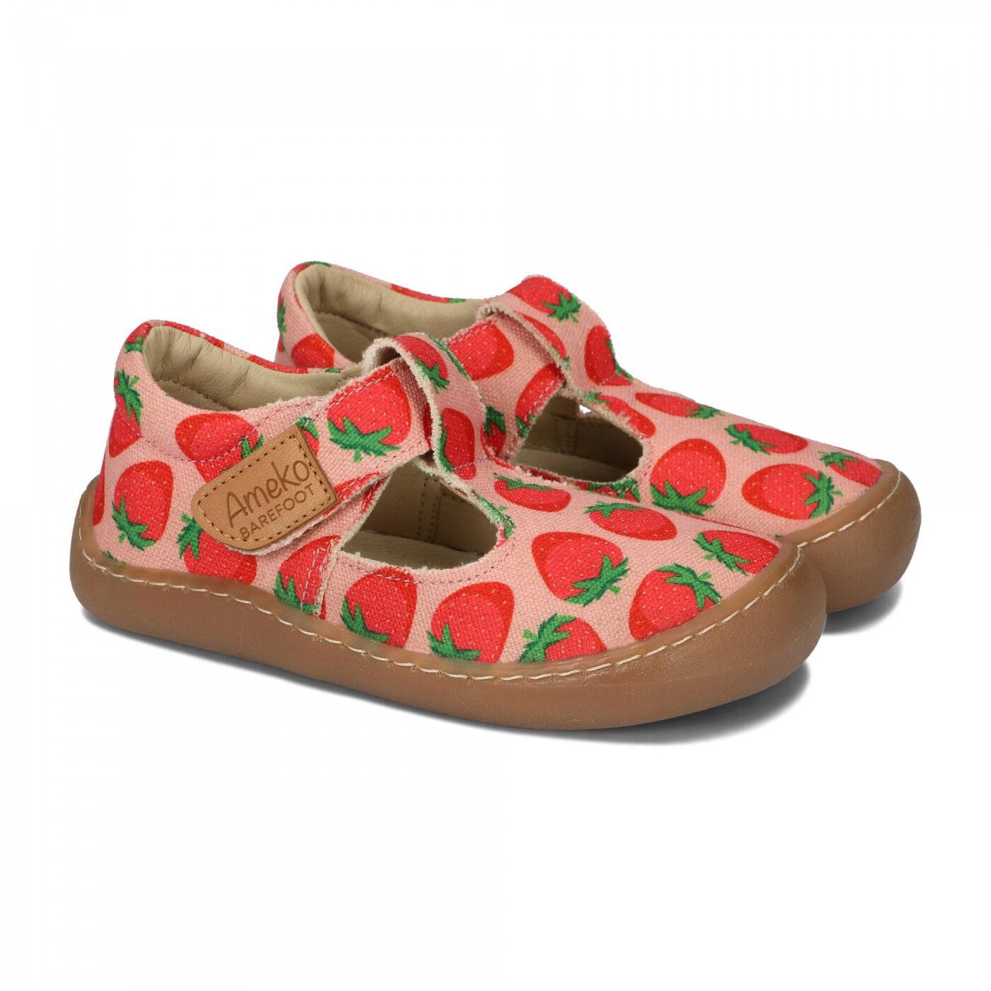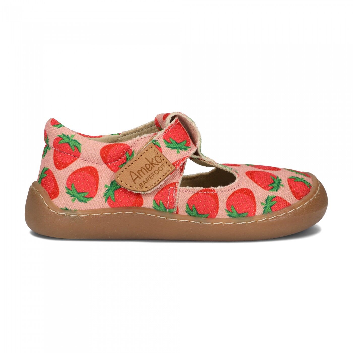 tenisówki barefoot dziecięce, Ameko Axel w truskawki, barefoot dla dzieci, zdrowe buty dziecięce, szeroki nosek, elastyczna podeszwa, zero drop, naturalne buty dla dziecka, buty barefoot do przedszkola, lekkie tenisówki dziecięce, oddychające buty dziecięce, barefoot dziewczęce w truskawki