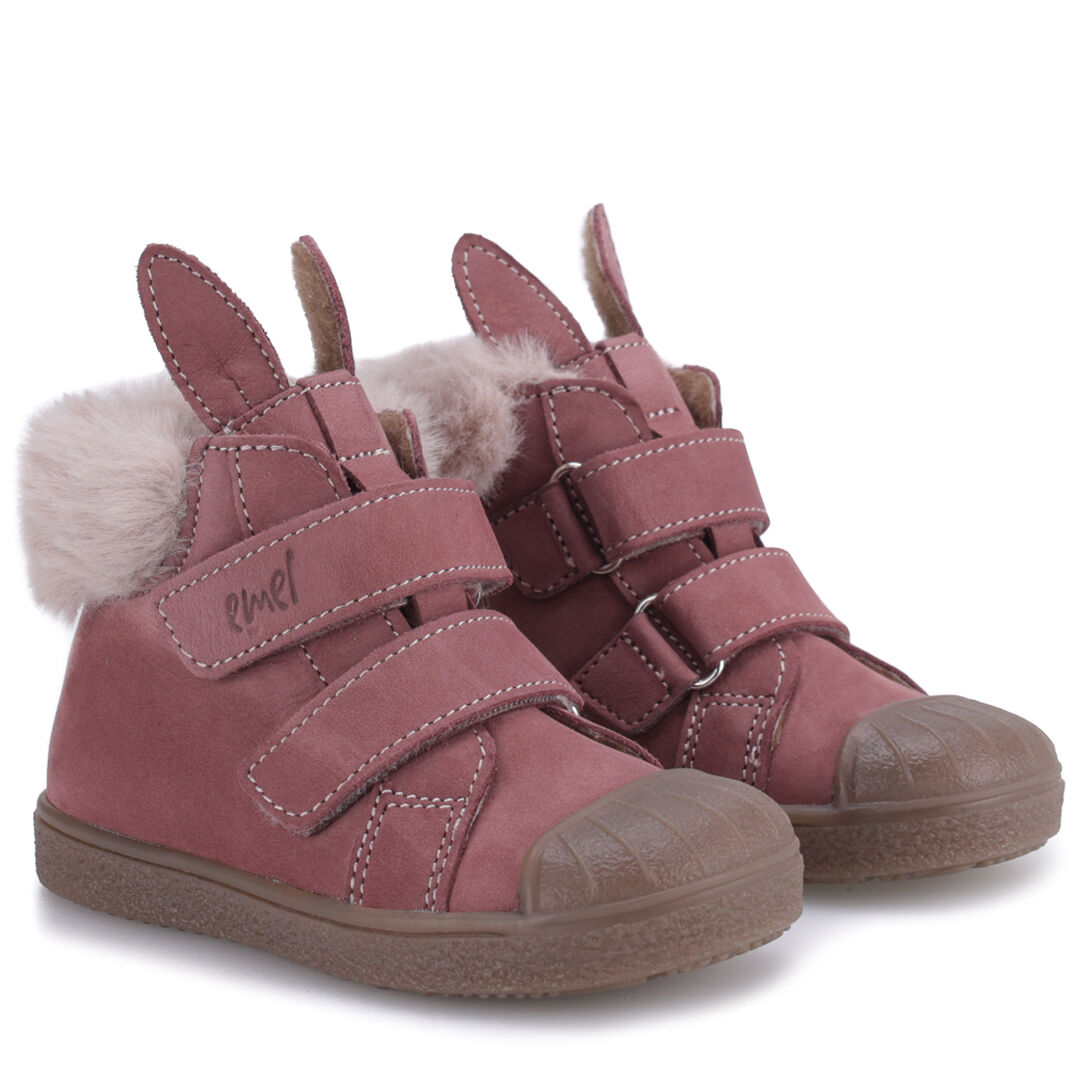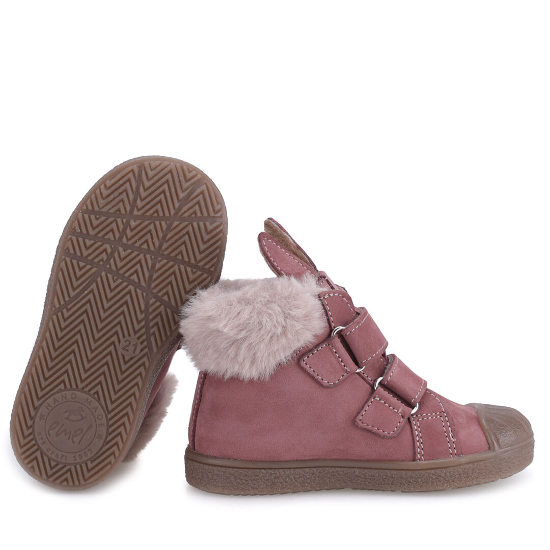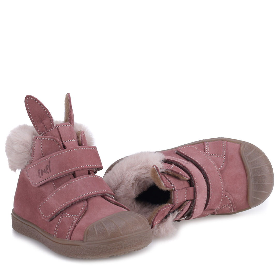 Skórzane trampki dla dziewczynki z membraną wodoszczelną i lekkim ociepleniem ozdobione futerkiem i uroczymi uszami