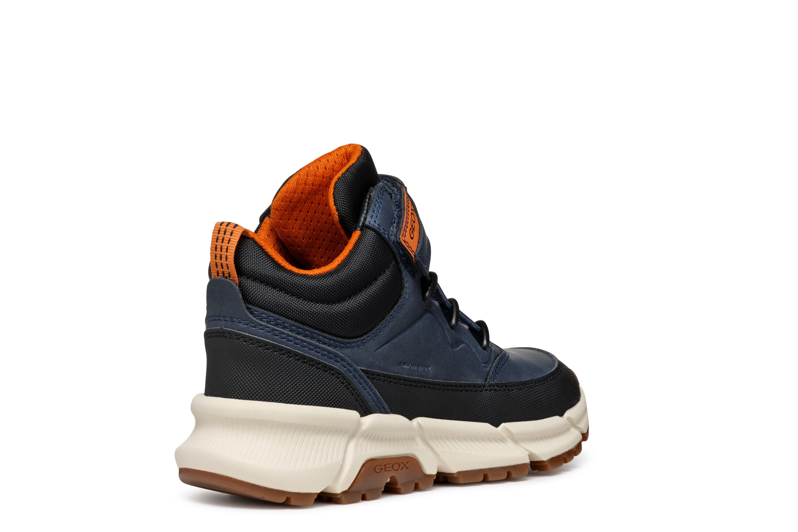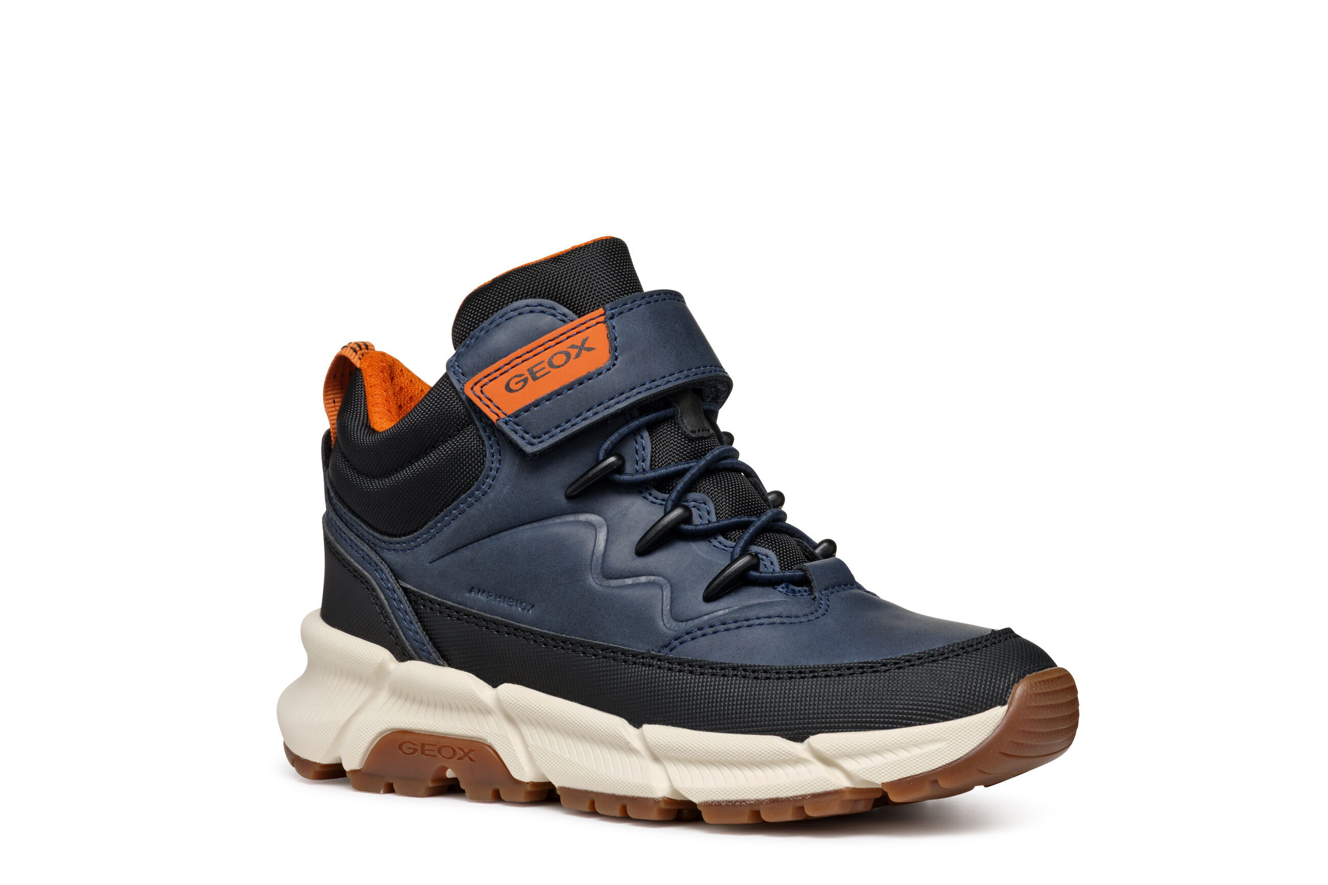 Tagranatowo pomarańczowa wersja Flexyper osadzona jest na gumowej podeszwie o wyjątkowej przyczepności i amortyzacji, gwarantując stabilny i wygodny chód nawet na mokrym podłożu