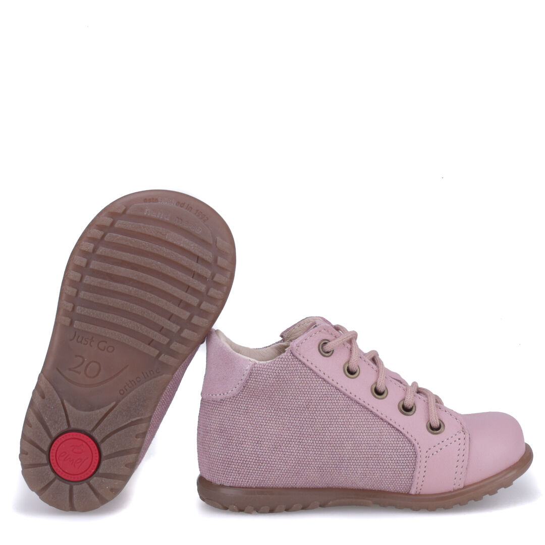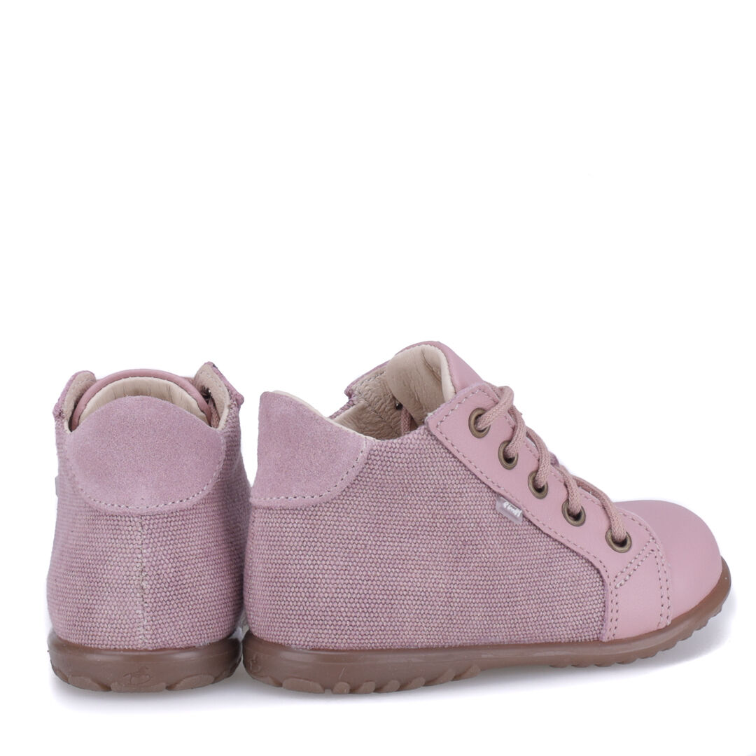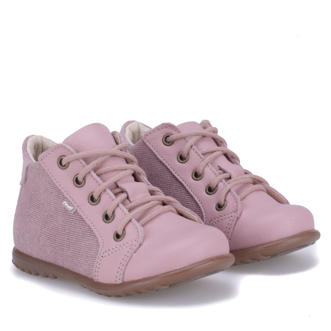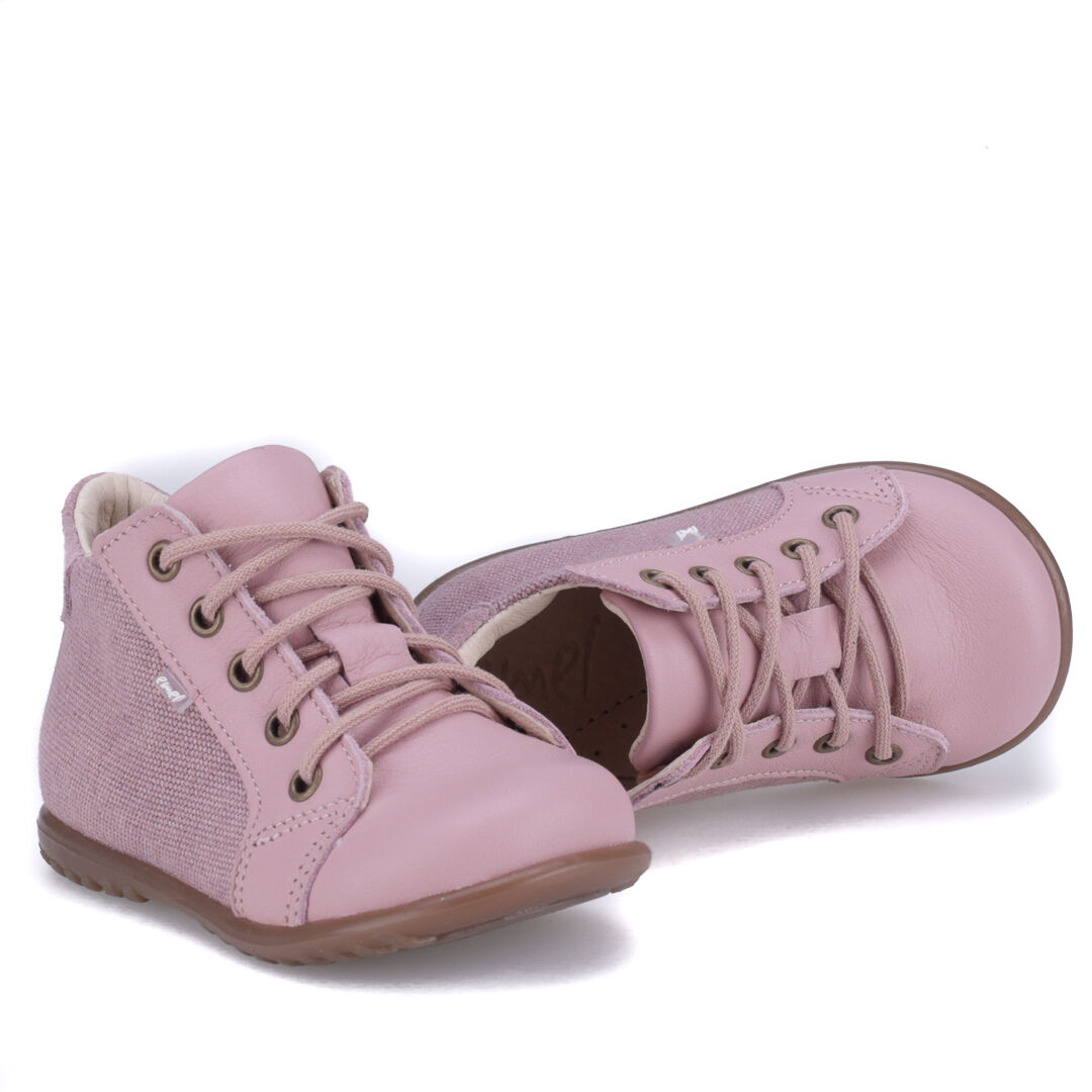 Sznurowany model trzewików z serii "roczki" opracowanej do nauki chodzenia.