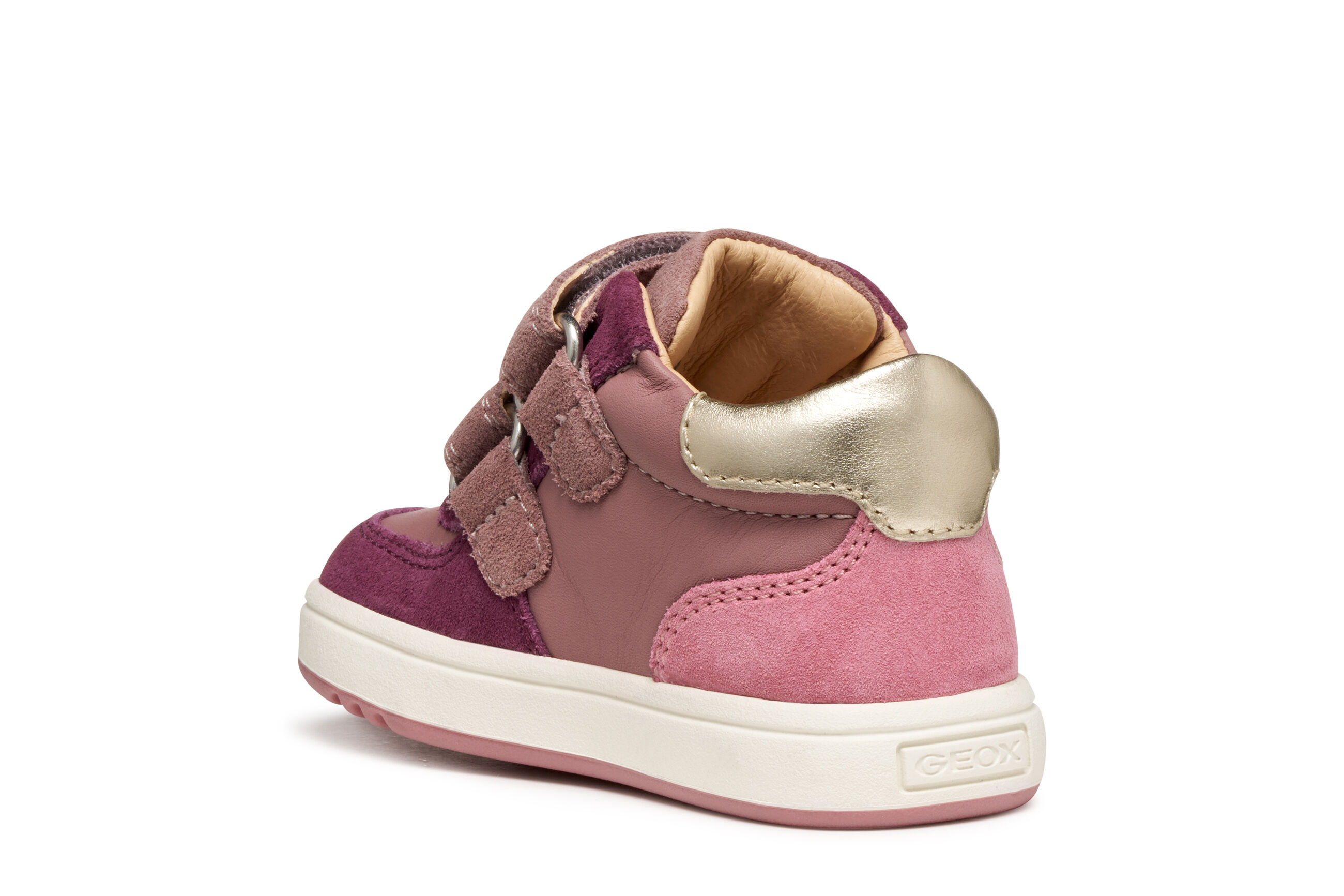 Cholewka wykonana jest ze skóry nappa i zamszu w granatowo-czerwonej kolorystyce, a ich miękkość i elastyczność rozpieszczają rozwijające się stopy.