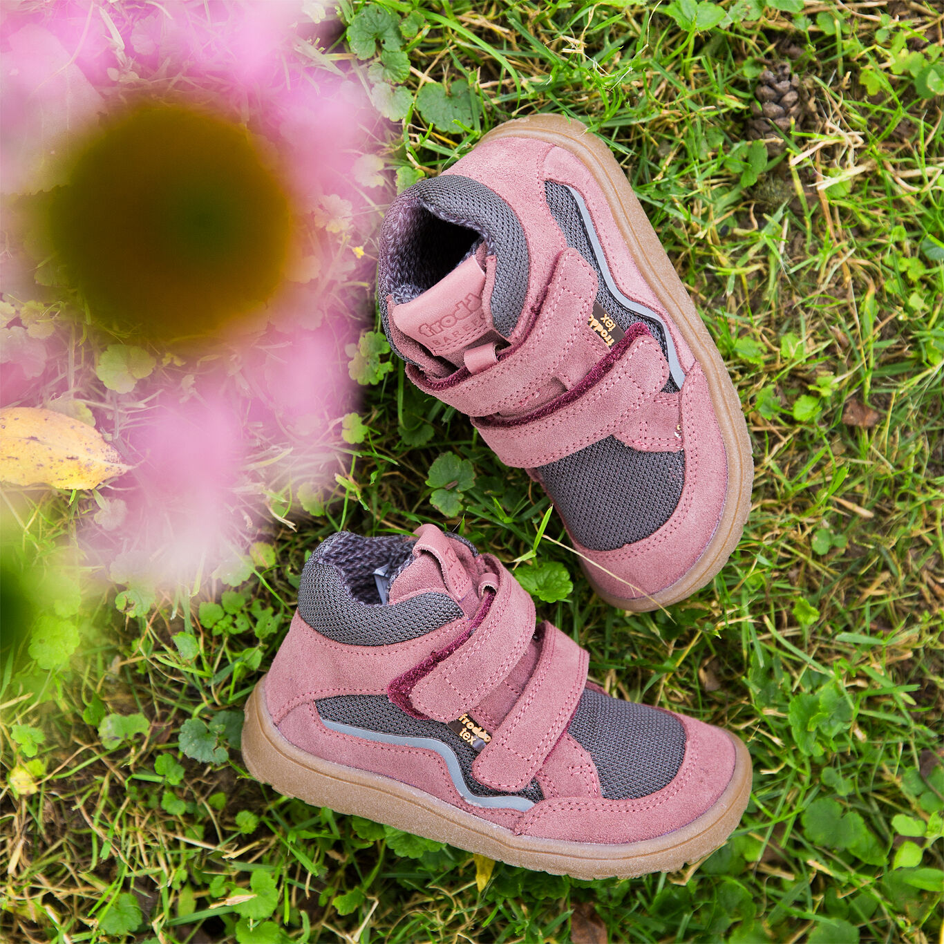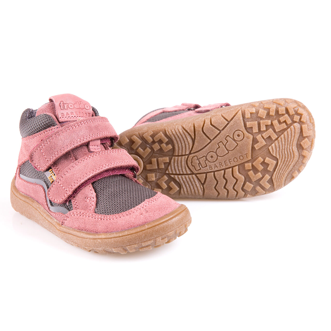 Trzewiki Froddo Barefoot to obuwie, które wykonano w oparciu o minimalistyczną konstrukcję, co pozwala na maksymalne wyczucie podłoża. Kształt buta zbliżony jest do kształtu stopy. Cholewkę wykonano z miękkiej skóry naturalnej zamszowej w połączeniu z siateczkowymi tkaninami, które zwiększają przepuszczalność powietrza . Podeszwa jest lekka, giętka i elastyczna. Zapięcie na dwie rzepy gwarantuje dobre dopasowanie zarówno do stóp z wysokim jak i normalnym podbiciem.