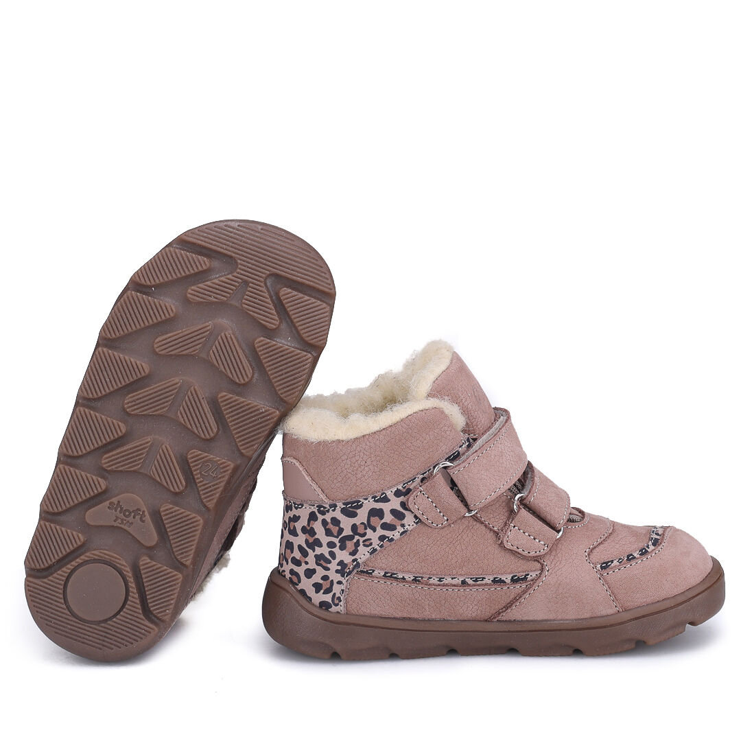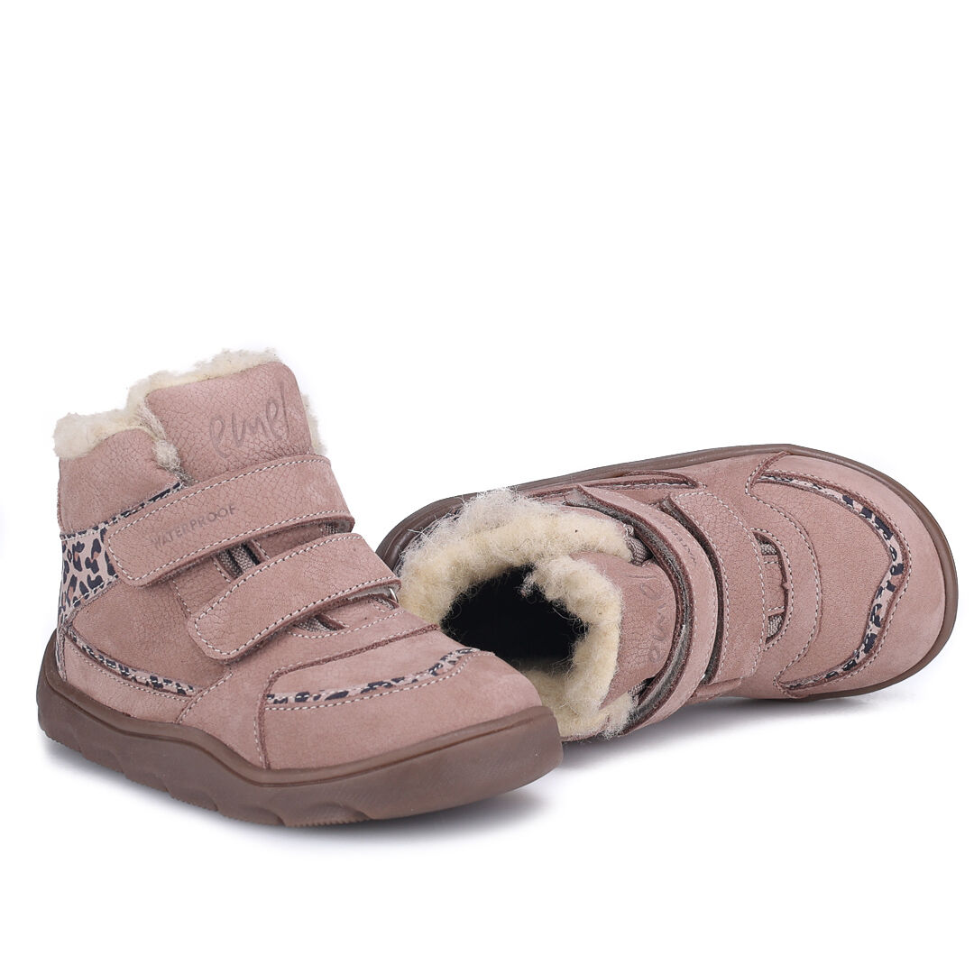 Skórzane beżowe trzewiki dziecięce zimowe Barefoot Emel Atlas wykonane zostały ze skóry naturalnej nubukowej. Śródpodszewkę w obuwiu stanowi membrana Te-por, która chroni przed przemakaniem i zapewnia "oddychalność".